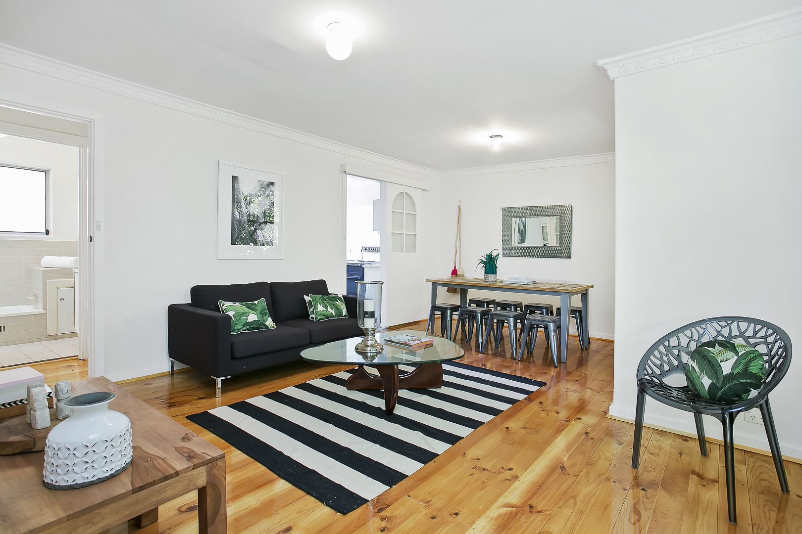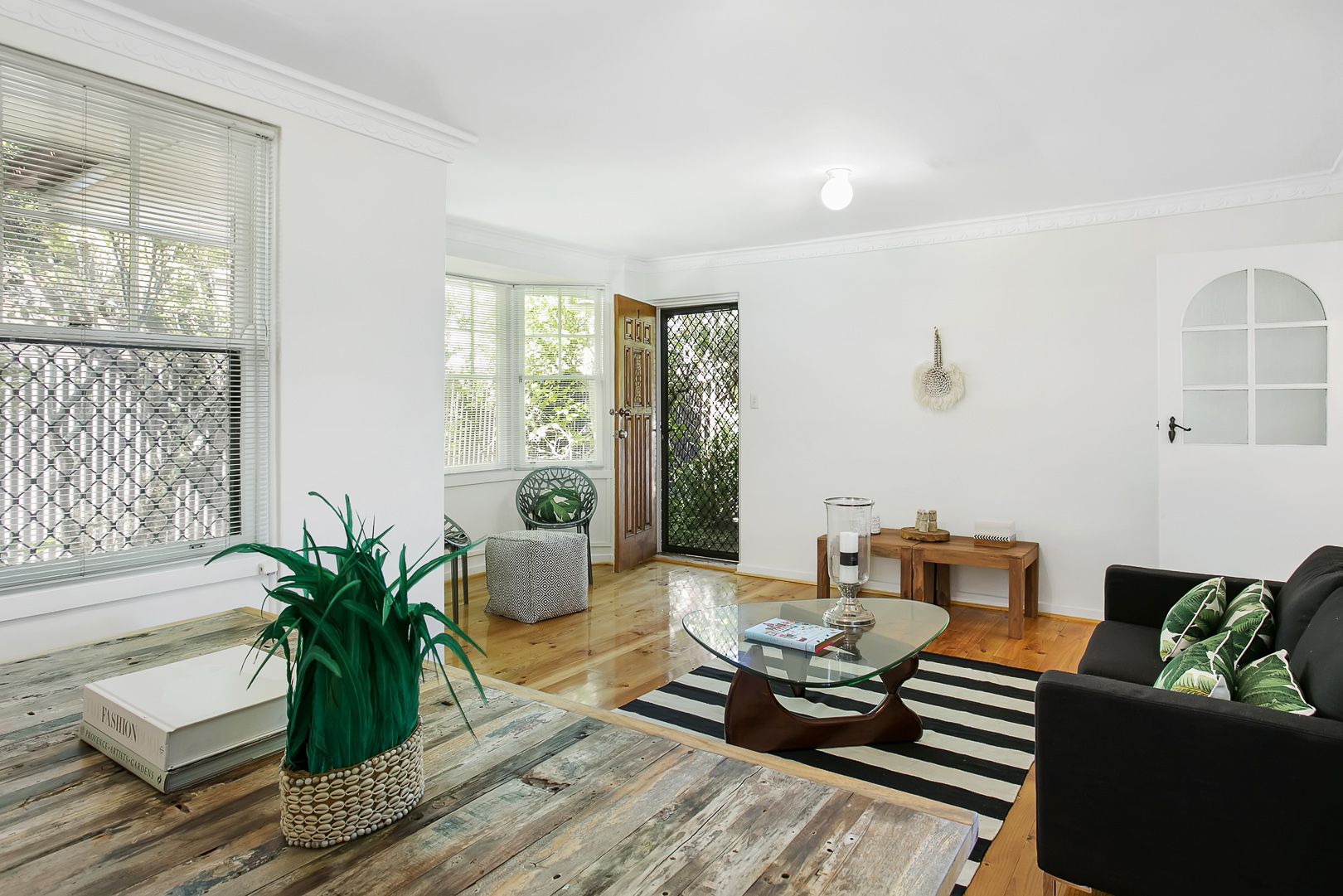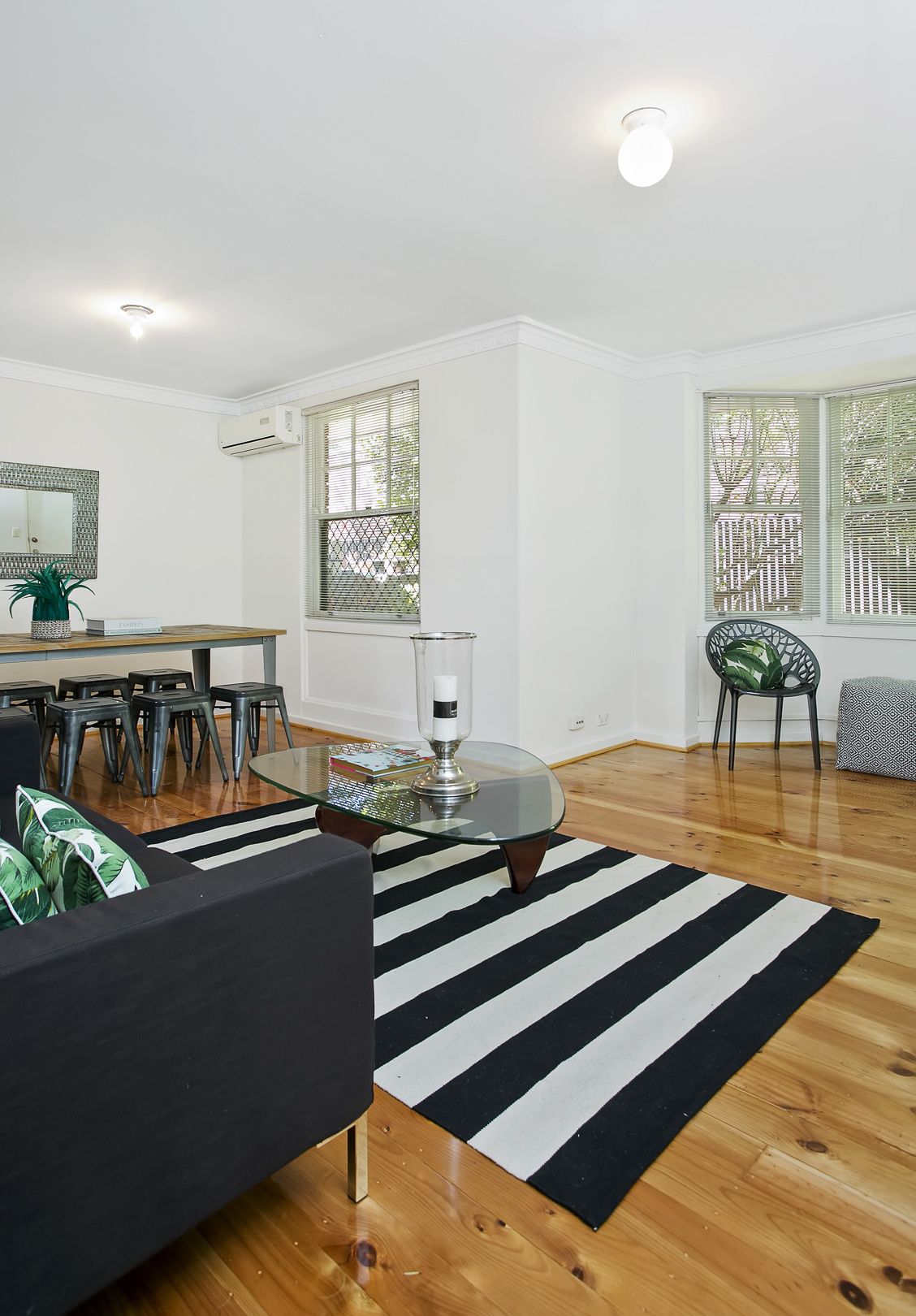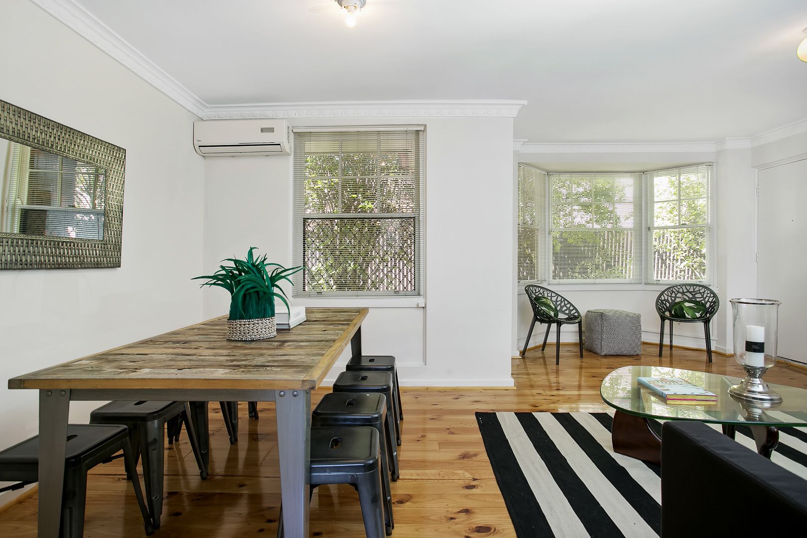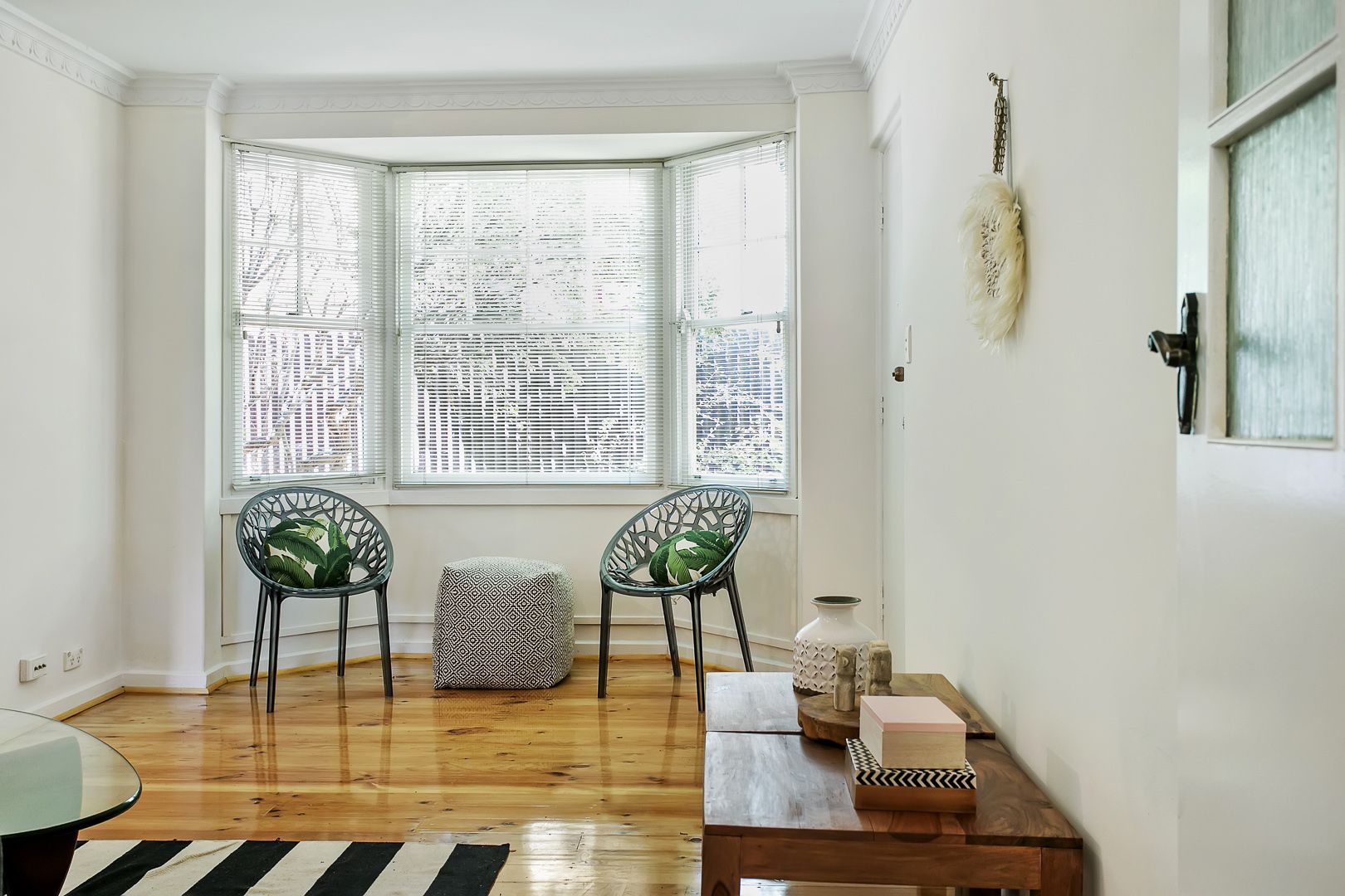 - Open plan living area with beautiful bay window.