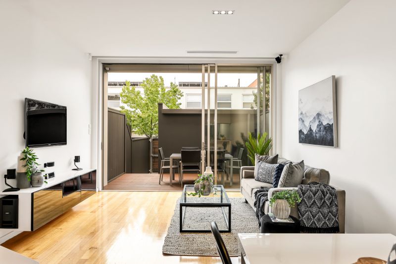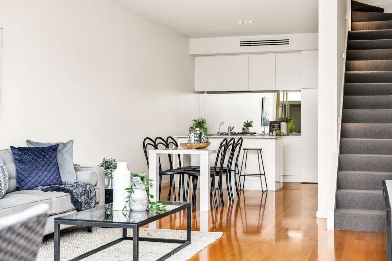 Enjoy a free flowing floor plan set over 2 levels and finished with quality appointments throughout. Enter from the private decked courtyard and step into the light and airy open plan living and dining where floor to ceiling doors stack open to provide an ideal space to entertain. Adjacent is the sleek white kitchen with island bench and large pantry cupboard providing valuable storage space for everyday essentials.