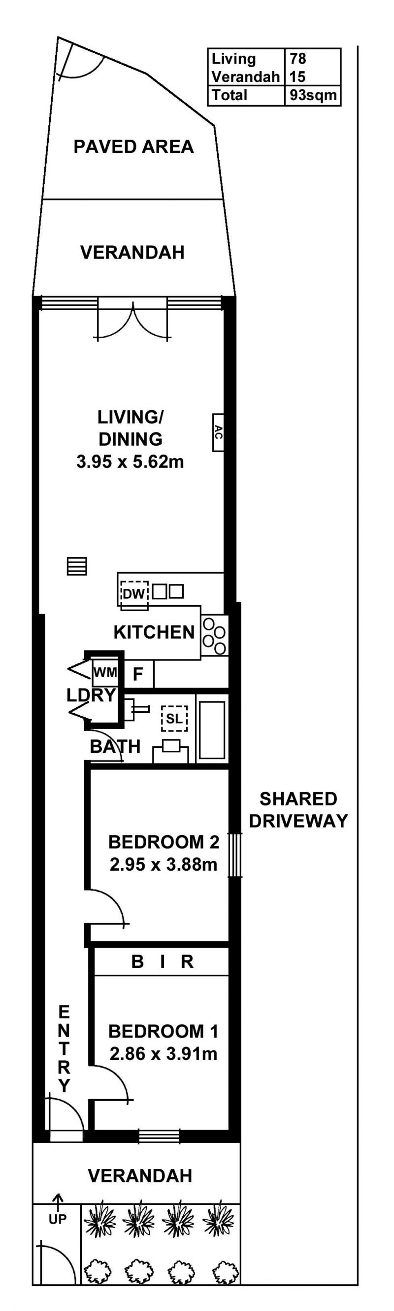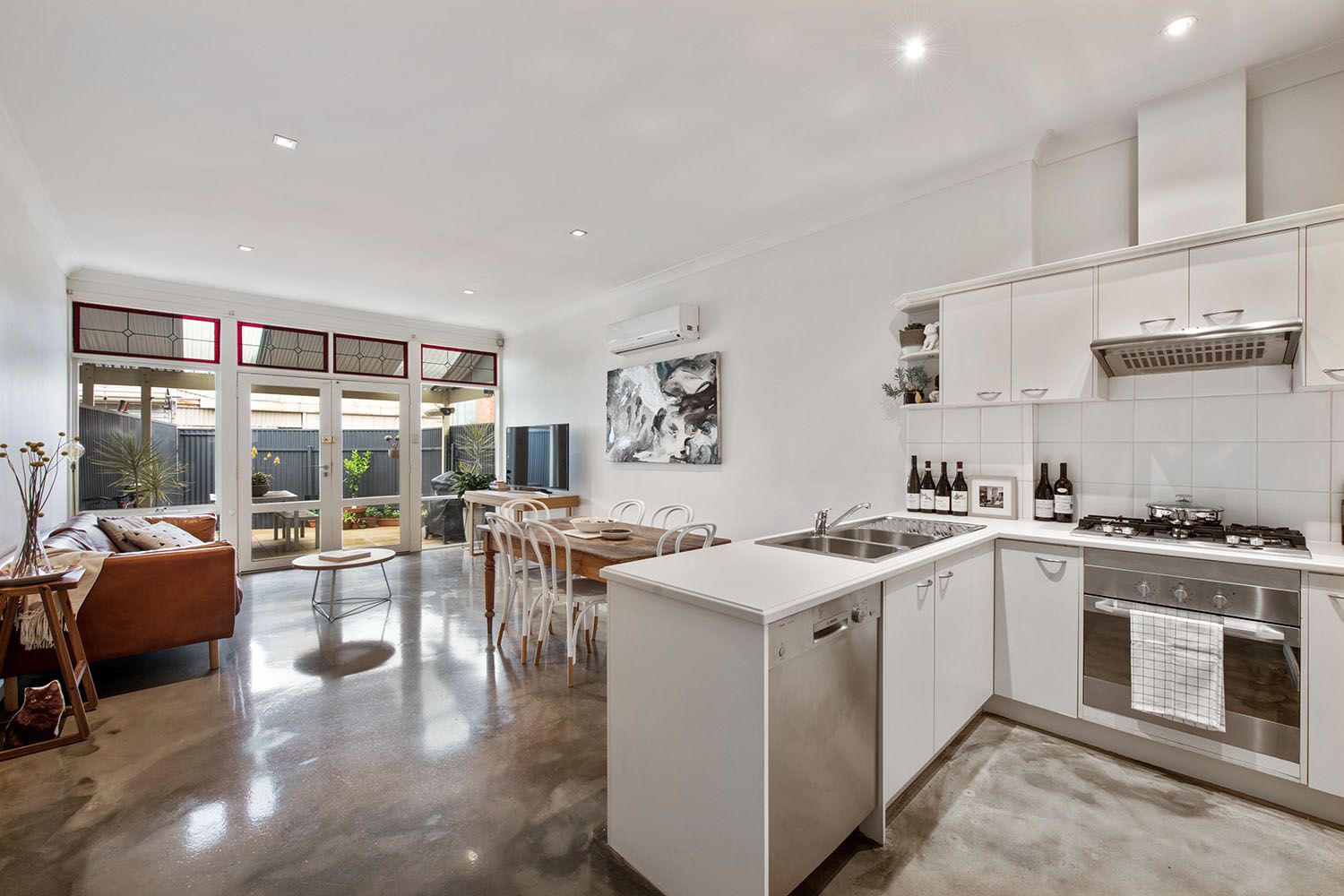 Comprising of two bedrooms (one with a wall to wall built-in robe) and open plan kitchen / meals / living area. Polished concrete floors lead through double doors to a private, paved and secure courtyard.