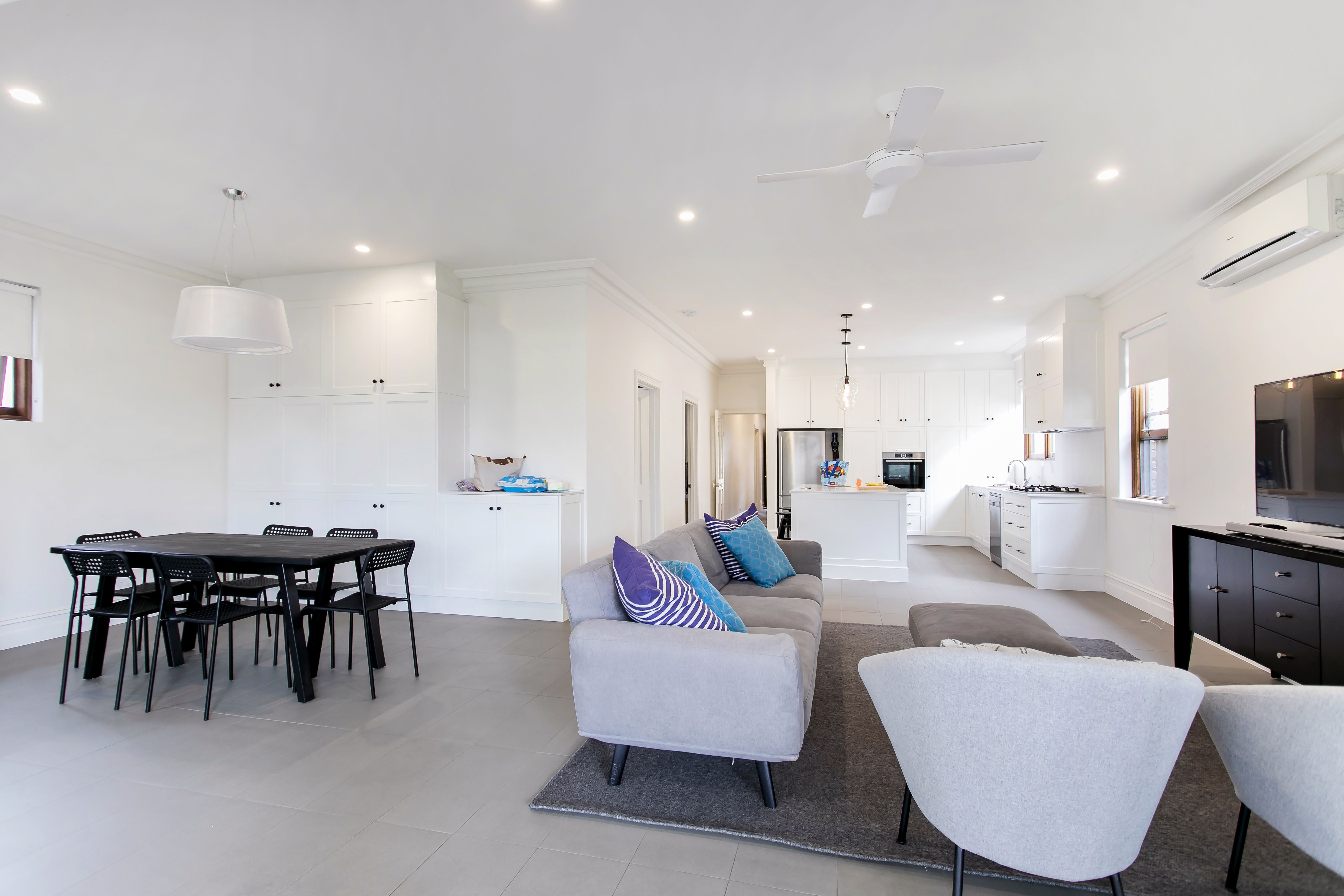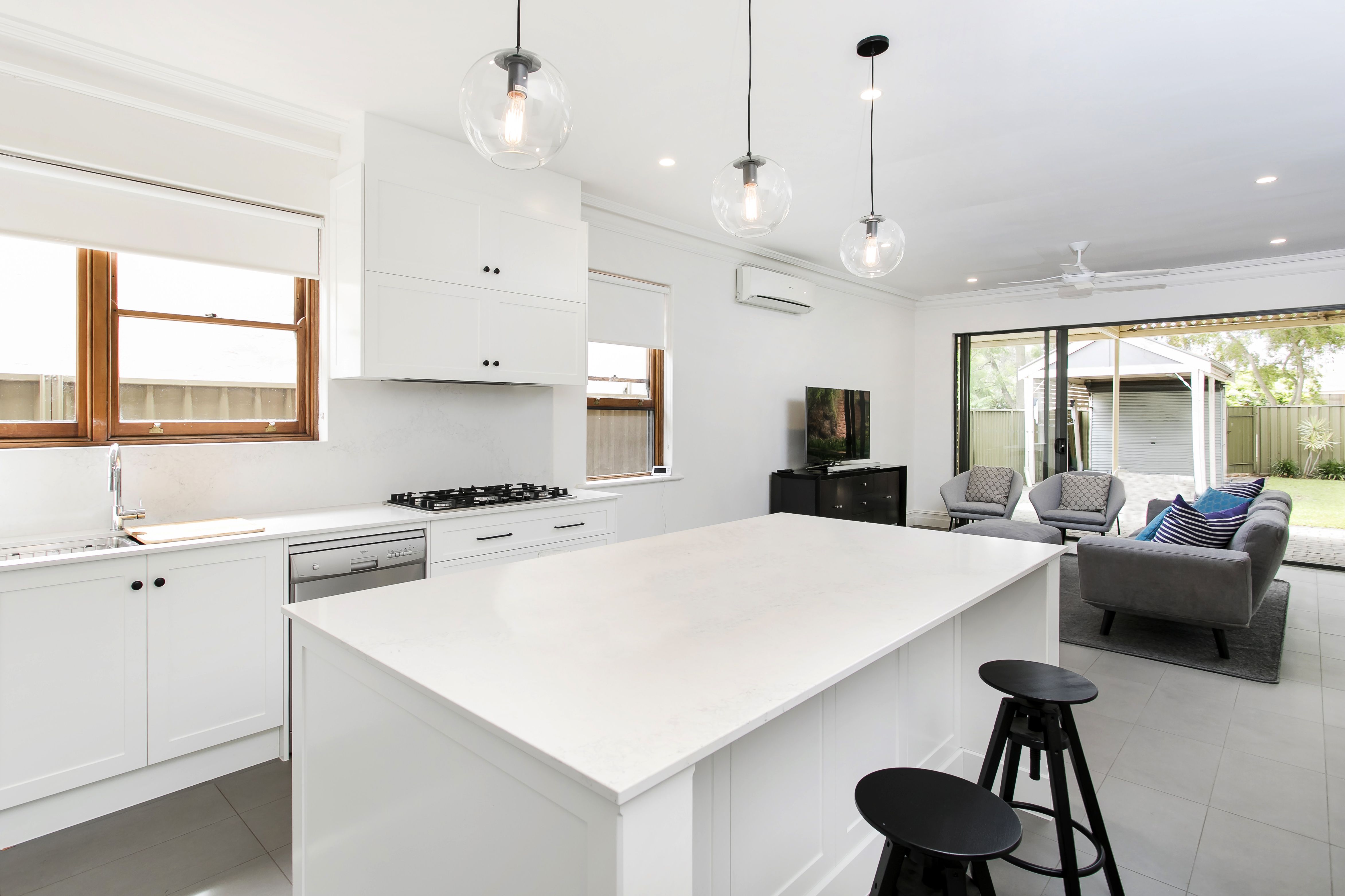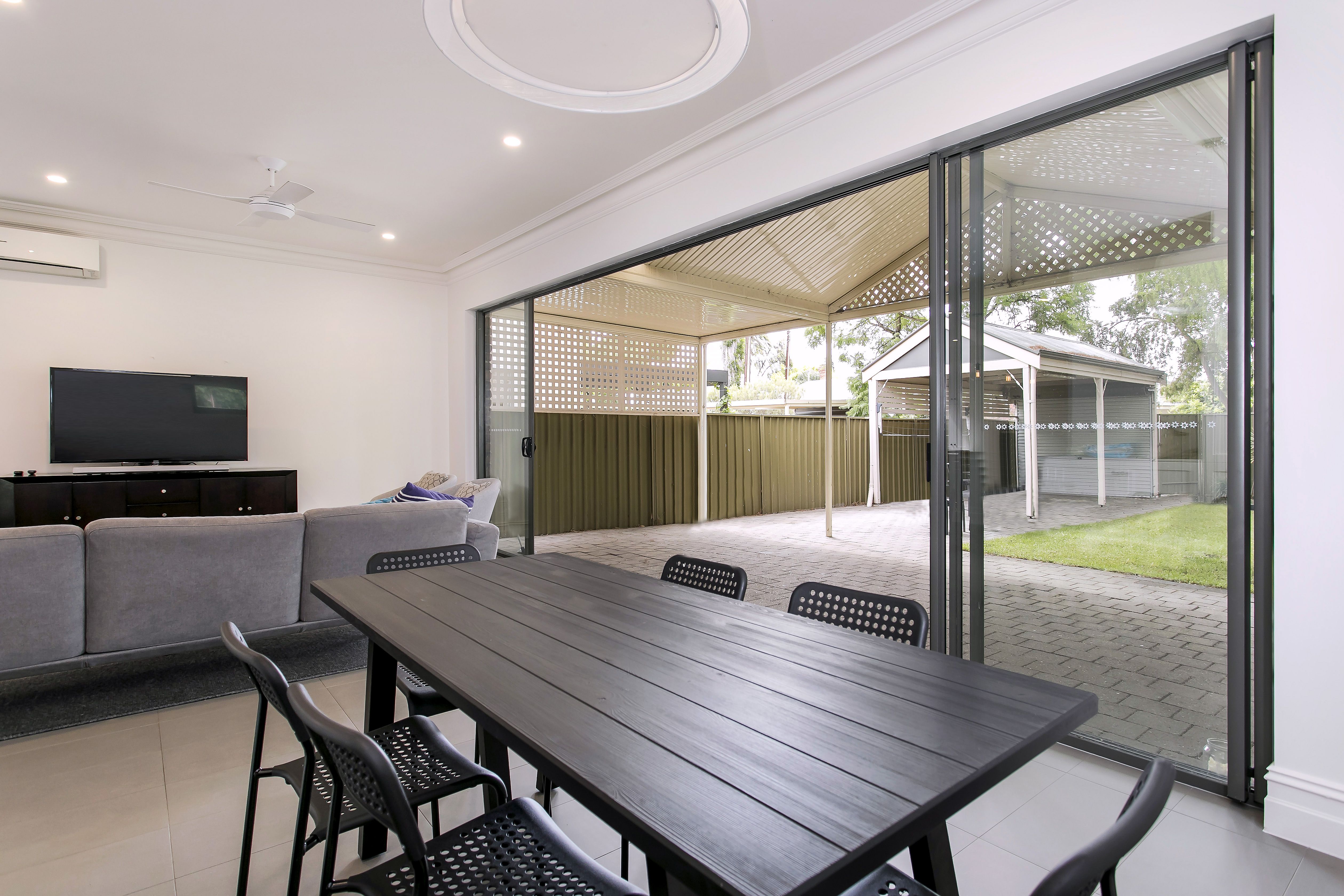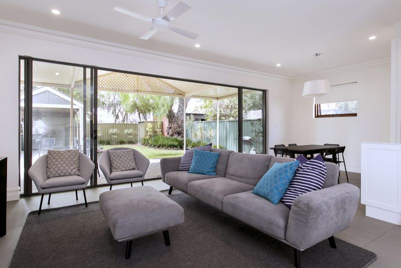 - Open plan living and dining rooms overlooking the rear entertaining area
