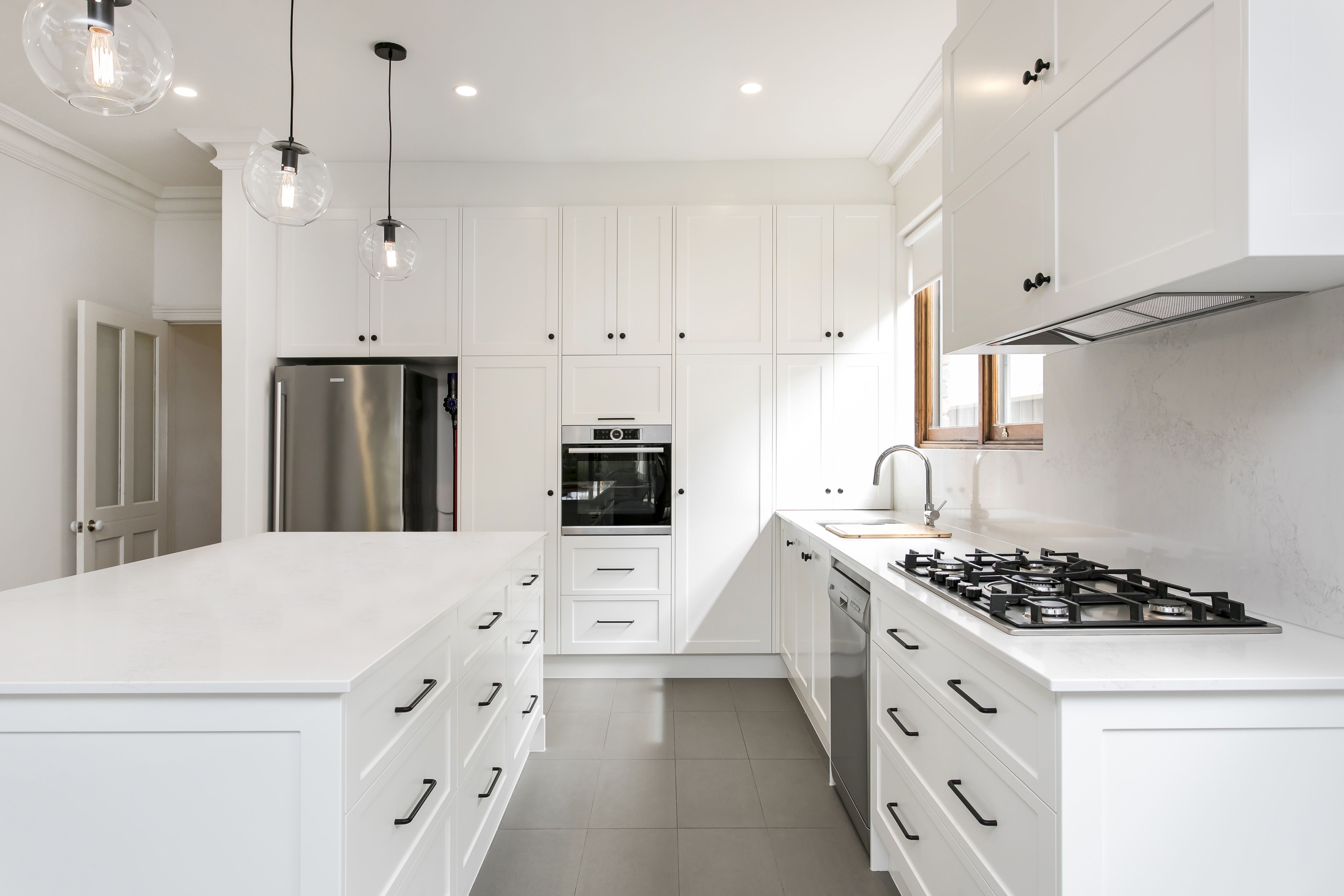 - Modern kitchen with stone benches, gas cooking, dishwasher and modern appliances throughout