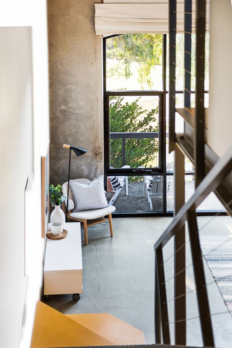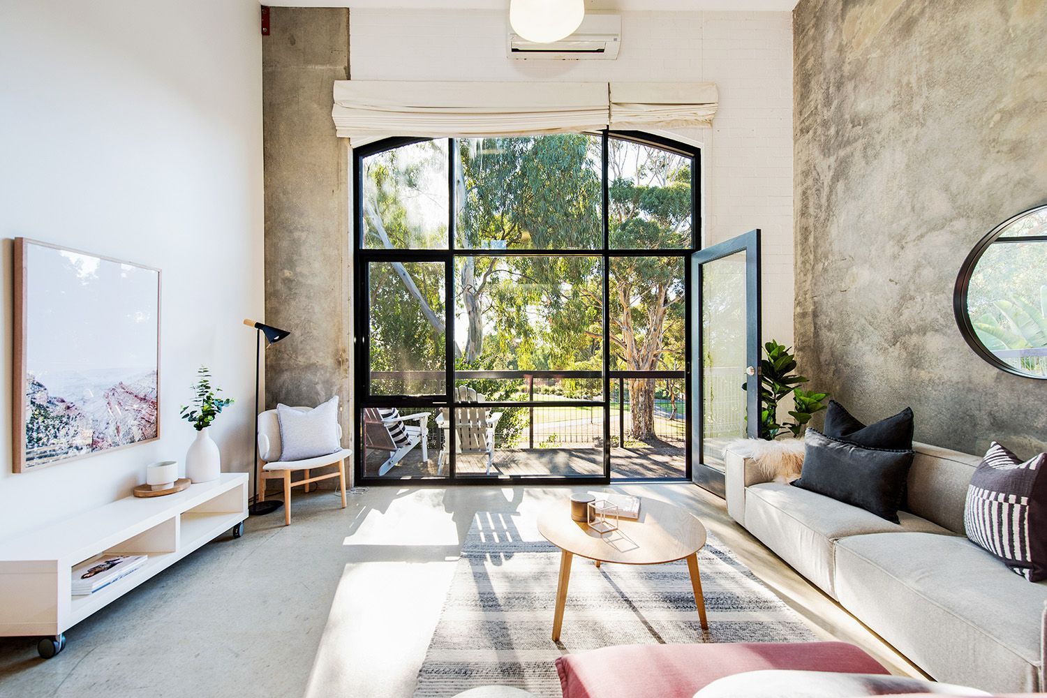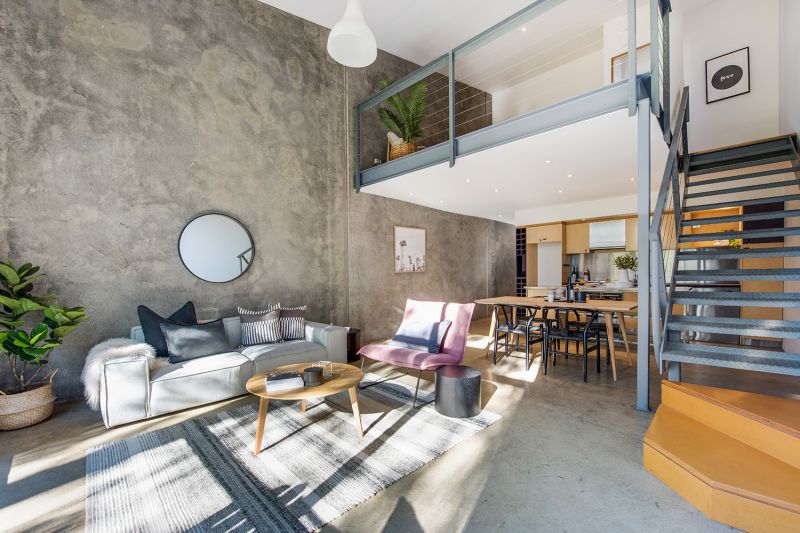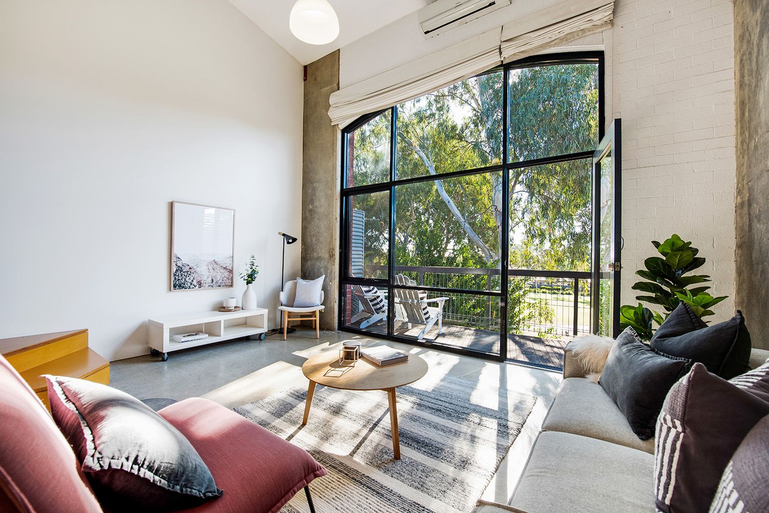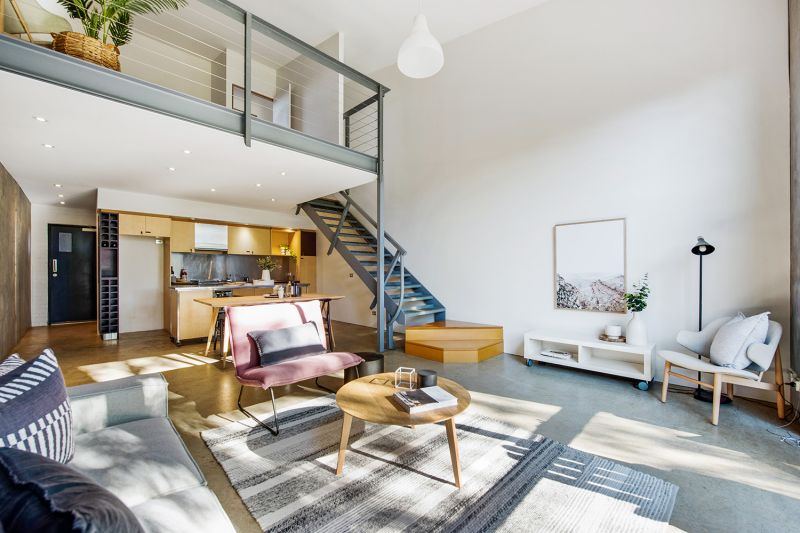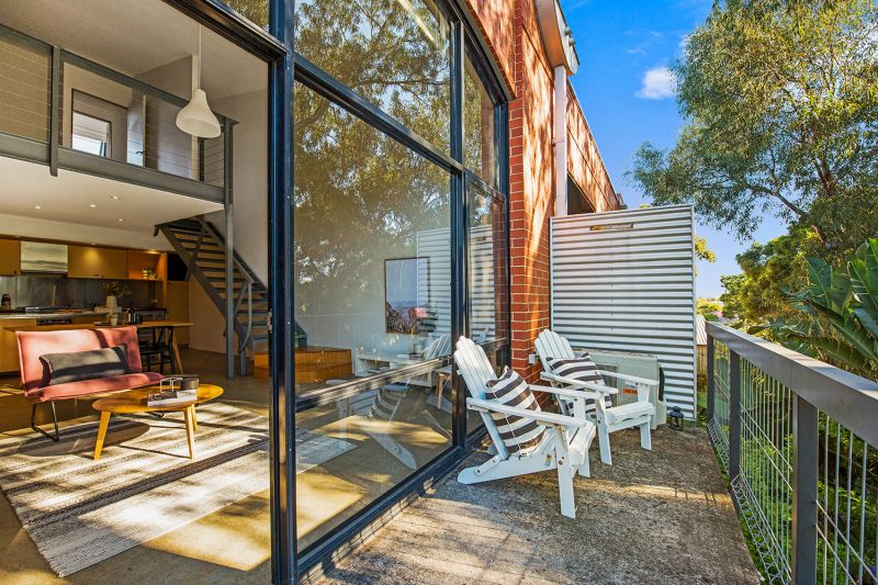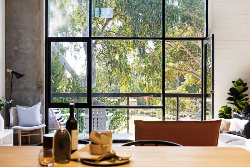 Warehouse style loft with towering double storey windows overlooking peaceful Linde Reserve.