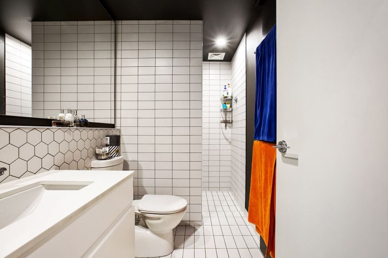 A family size bathroom is positioned centrally and fitted with frameless shower screen.