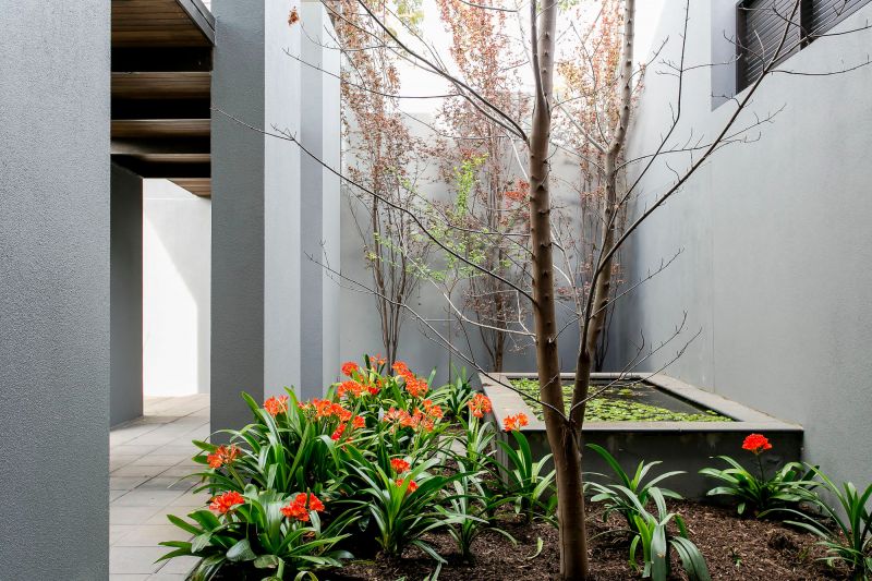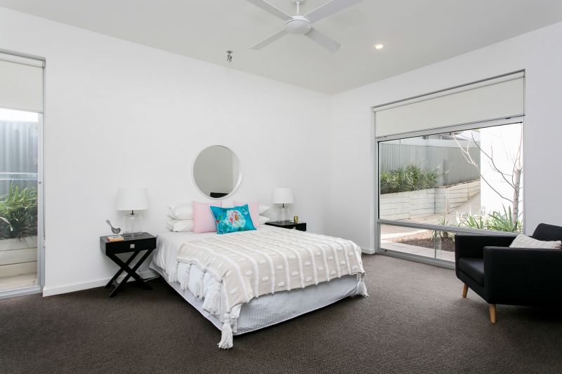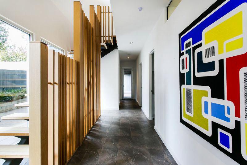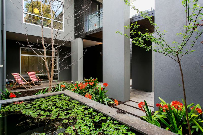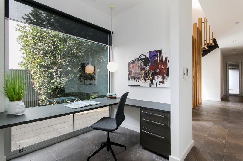 Sun splashes the superb staircase accessing the lower level which accommodates 4 double bedrooms, a further study nook, 2 luxury bathrooms & laundry. A zen inspired rear courtyard inspires peace and tranquility in this modern, elegant space.