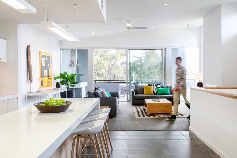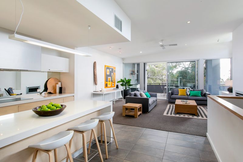 Pleasing neutral palate throughout, elegant ceiling heights and superb, light-filled, open plan living spaces with vast glass expanses unfolding to a large outdoor entertaining terrace with stunning outlooks to Beaumont Common. The luxurious entertainer's kitchen features a very large stone counter top, European appliances plus a work station nook.