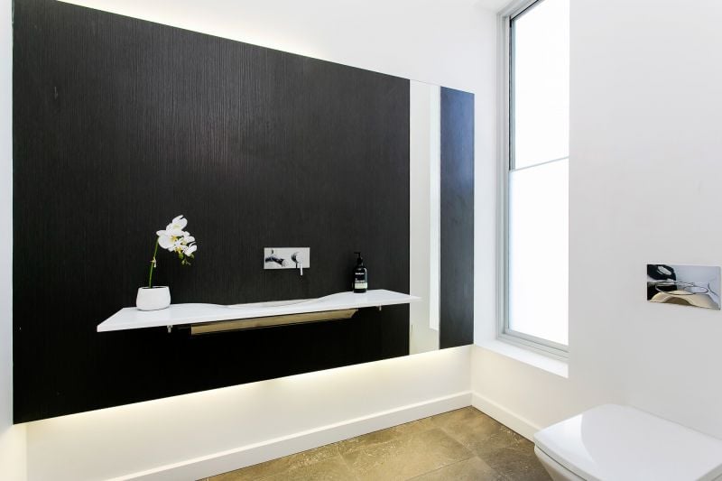 Powder room with a 20mm wash plane and wall hung villeroy boch toilet