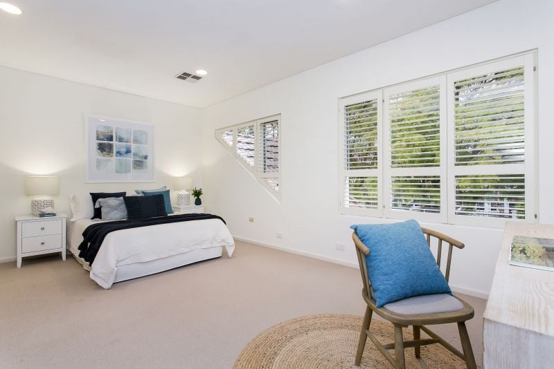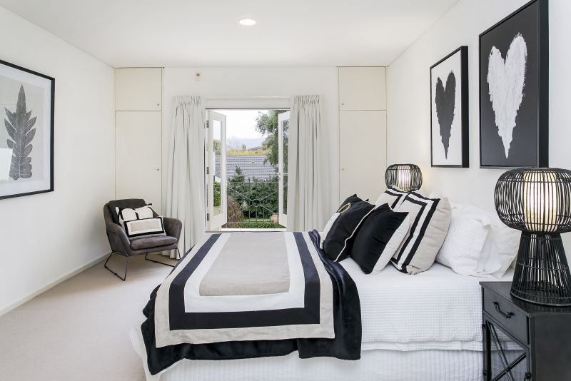 Master bedroom suite upstairs with Juliet balcony, walk-in robe and ensuite plus second bedroom and main modern sparkling bathroom.