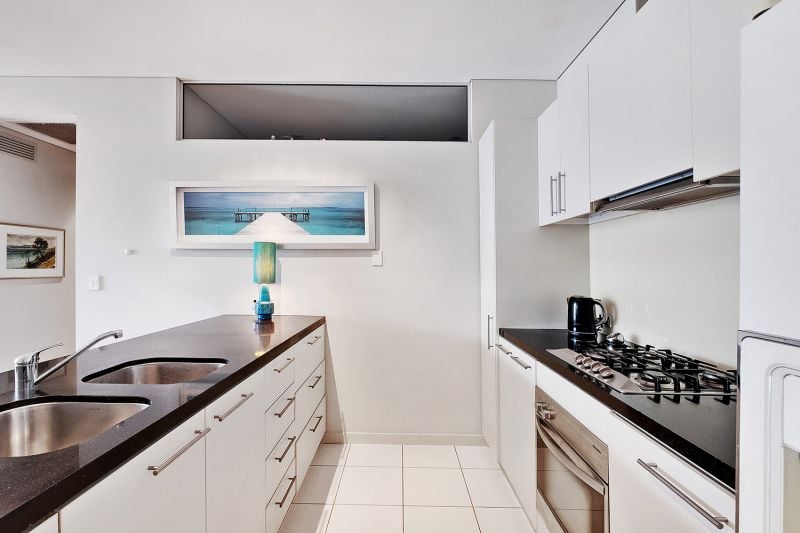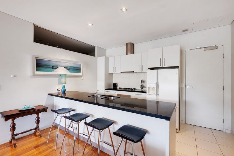 There are two bedrooms, the main overlooking the balcony plus walk-in robe and chic en-suite. Bedroom two has spacious built in robes and is cleverly appointed to the main bathroom serving the perfect, private guest room! Unwind in the luxurious main bathroom with separate bath and large shower.