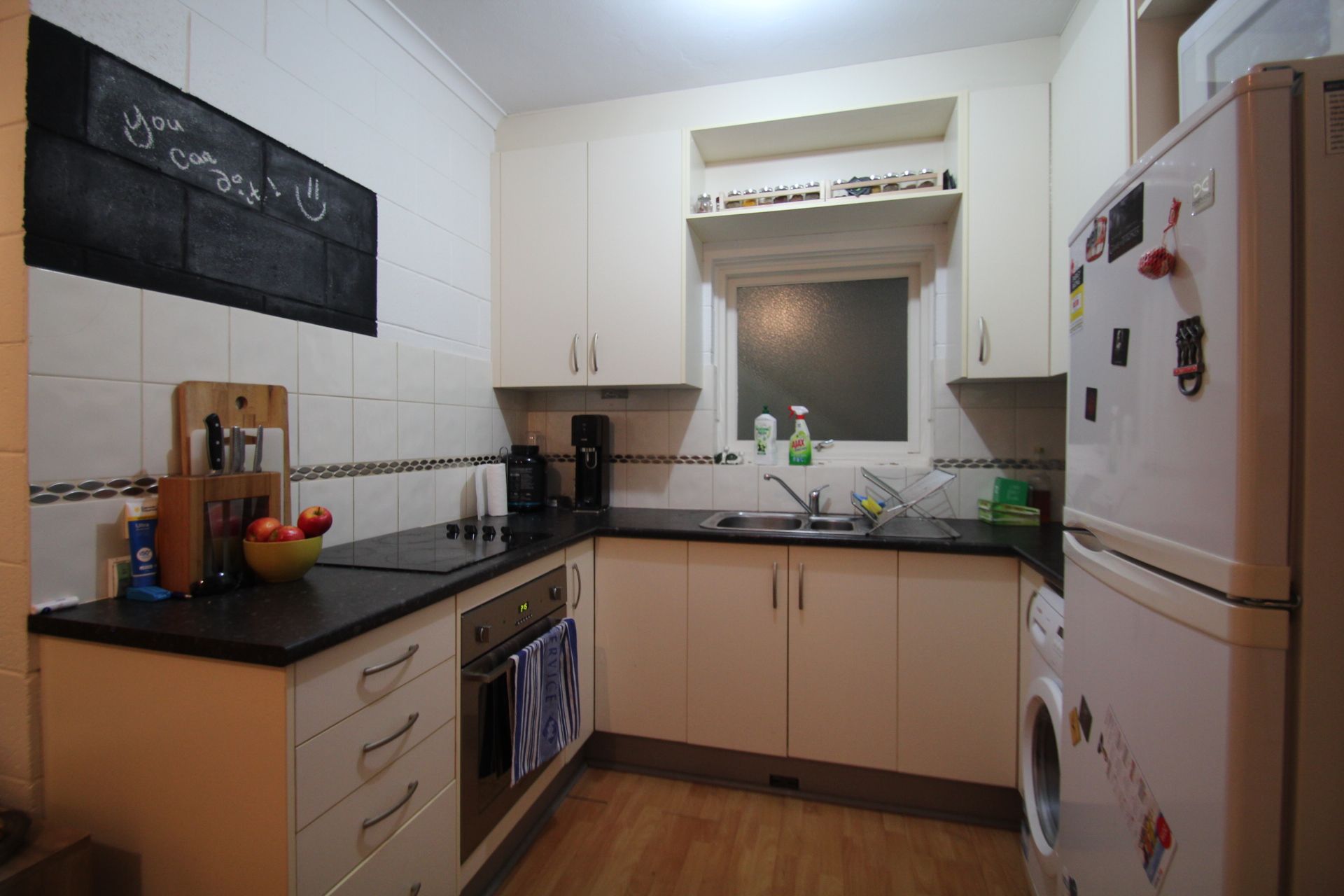- Neat and tidy kitchen with good cupboard space, electric cook top and under bench oven
