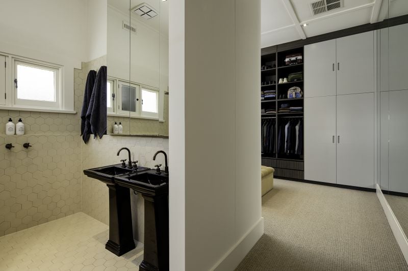 Set on a generous allotment of over 1000sqm (approx.) retaining classic stonework and a tessellated return verandah providing just a hint of features from its era. Introduced by an L-shaped hall revealing a world of contrast and style. American Oak floors, a spider pendant light, carriage doors to the games room, well proportioned dreamy bedrooms – the master features a generous walk-in robe and lavish ensuite bathroom with smoke glass shower screen and black porcelain his-and-hers basin.