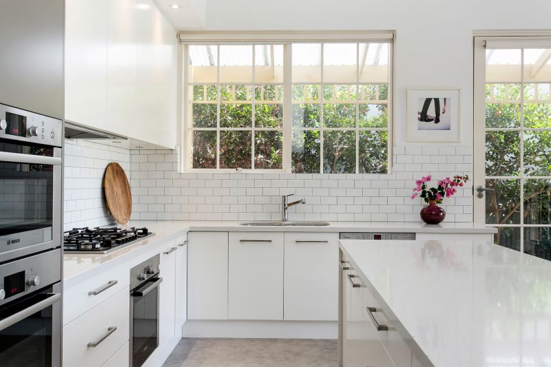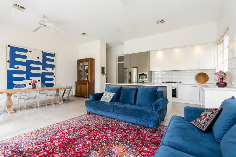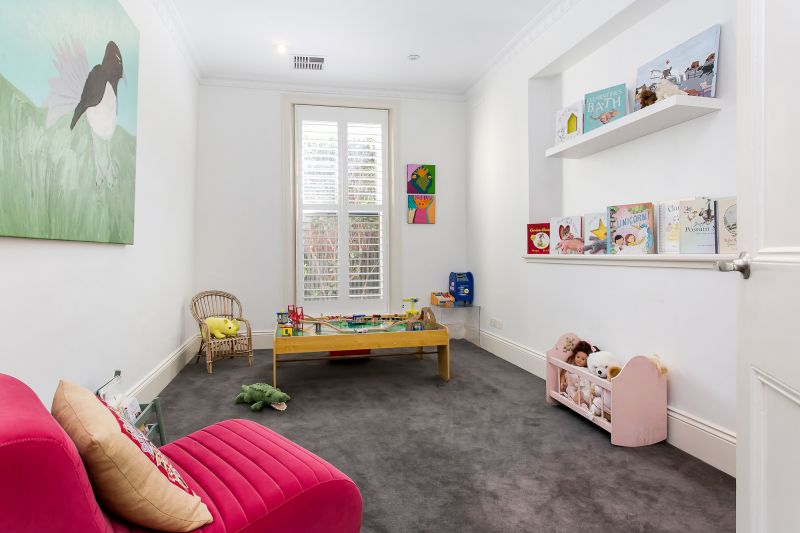 Popular Victorian stone Villa with contemporary edge. Comprising 3 bedrooms including main with walk in robe and ensuite, plus study or 4th bedroom. Renovated and extended with a modern open plan kitchen and living area featuring high ceilings and tall glass expanses to the north.
