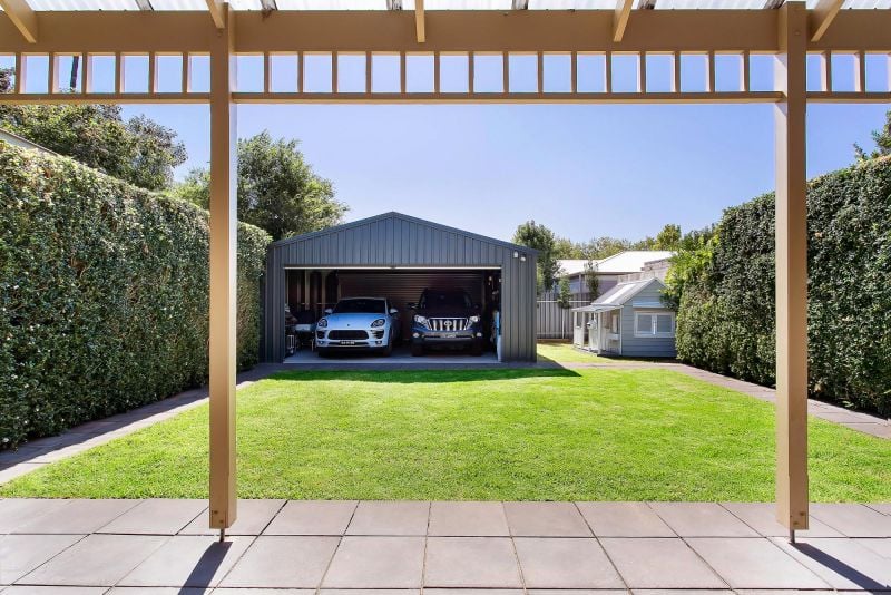 Opening to large covered entertaining terrace and private garden with tall perimeter hedges, in effect - walls of green. The rear lane provides access to secure double garaging with extra width and remote controlled doors at either end.