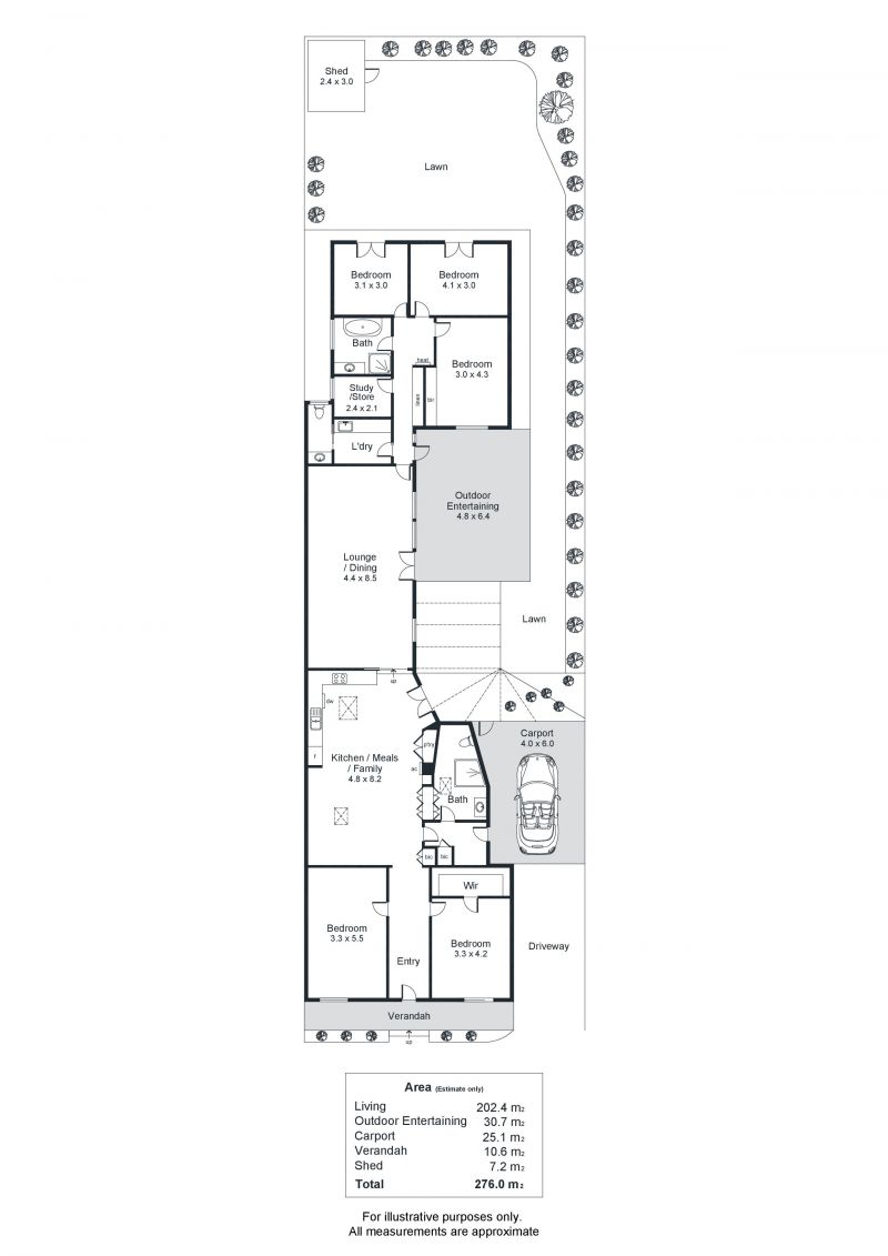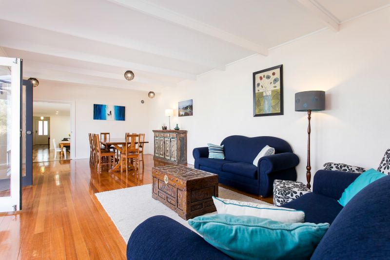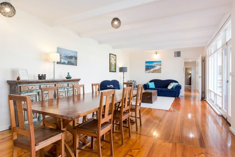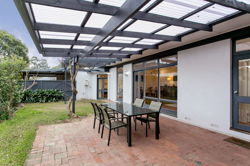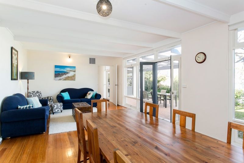 Up two steps and you enter into the formal dining and sitting room with French doors leading to the undercover entertaining area and lawned garden.