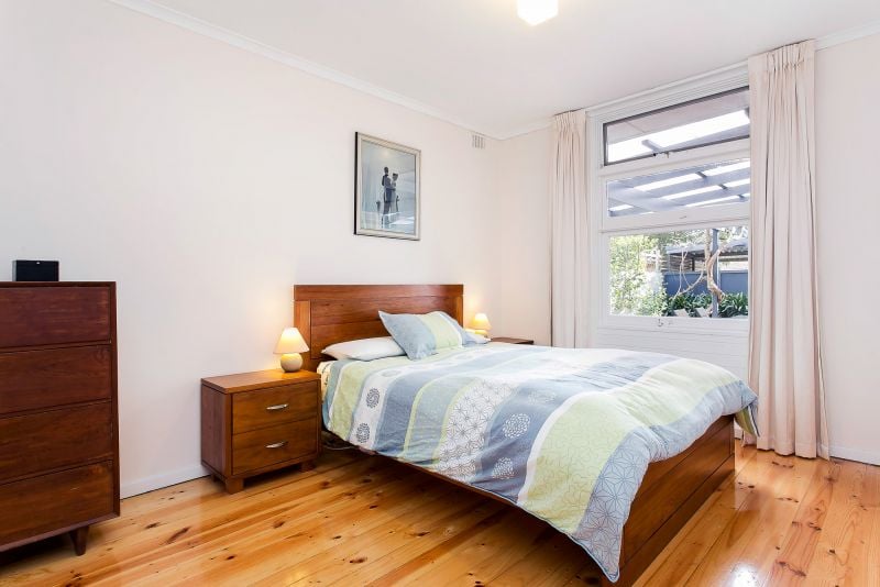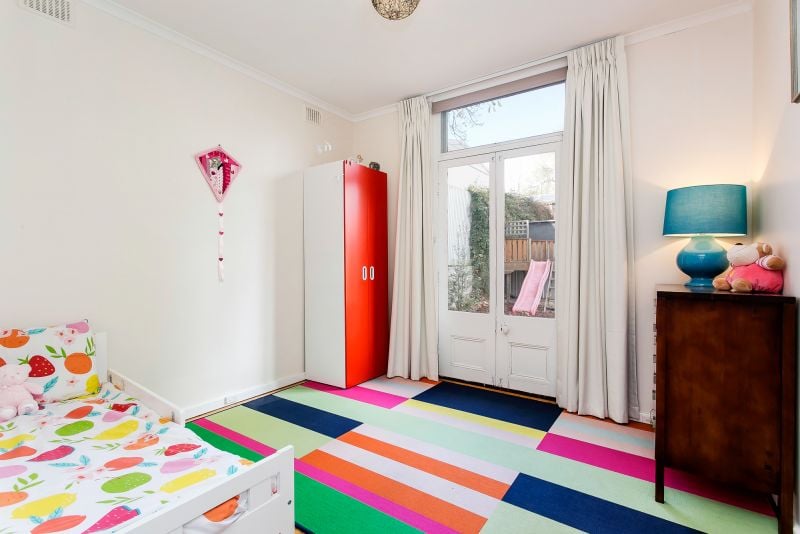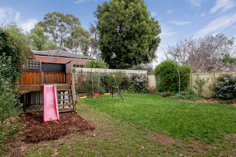 The backyard is a children's haven with a built-in cubby house and slide plus a large lawn area to kick a ball.