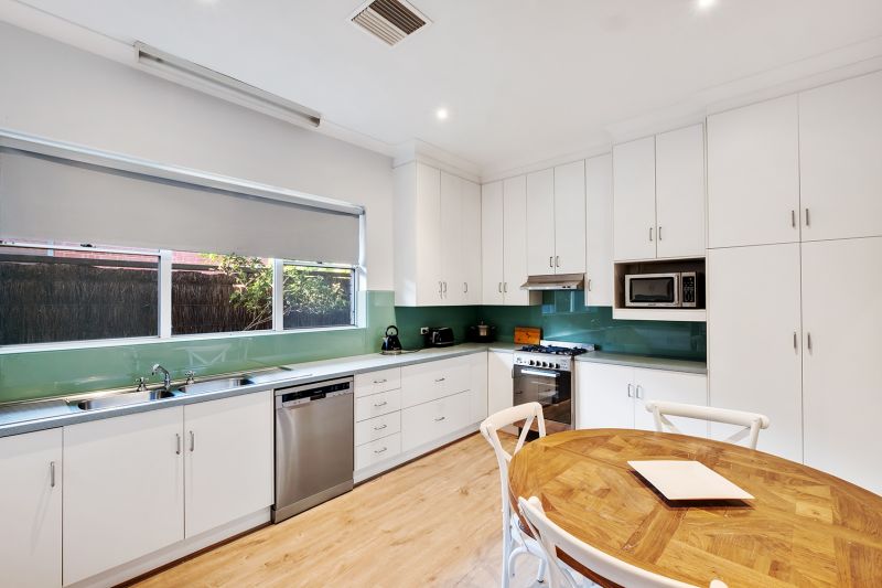 A functional layout that comprises of 3 double bedrooms - the master with ensuite and built-in storage. A central living room opens out to the paved courtyard, separate formal dining, eat-in kitchen with glass splashbacks and updated appliances including gas stove and dishwasher.