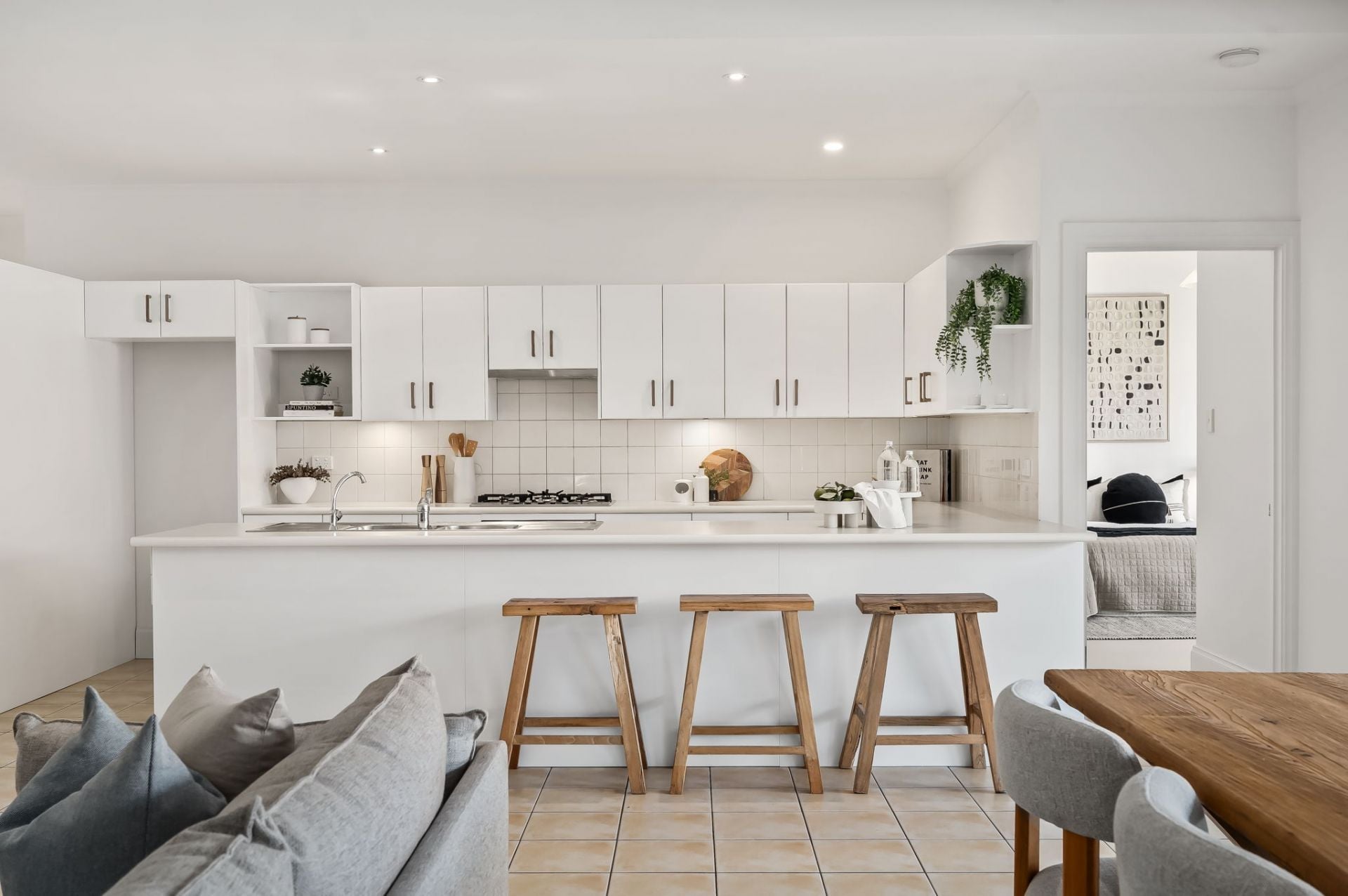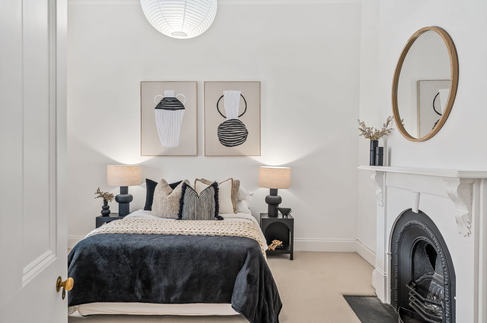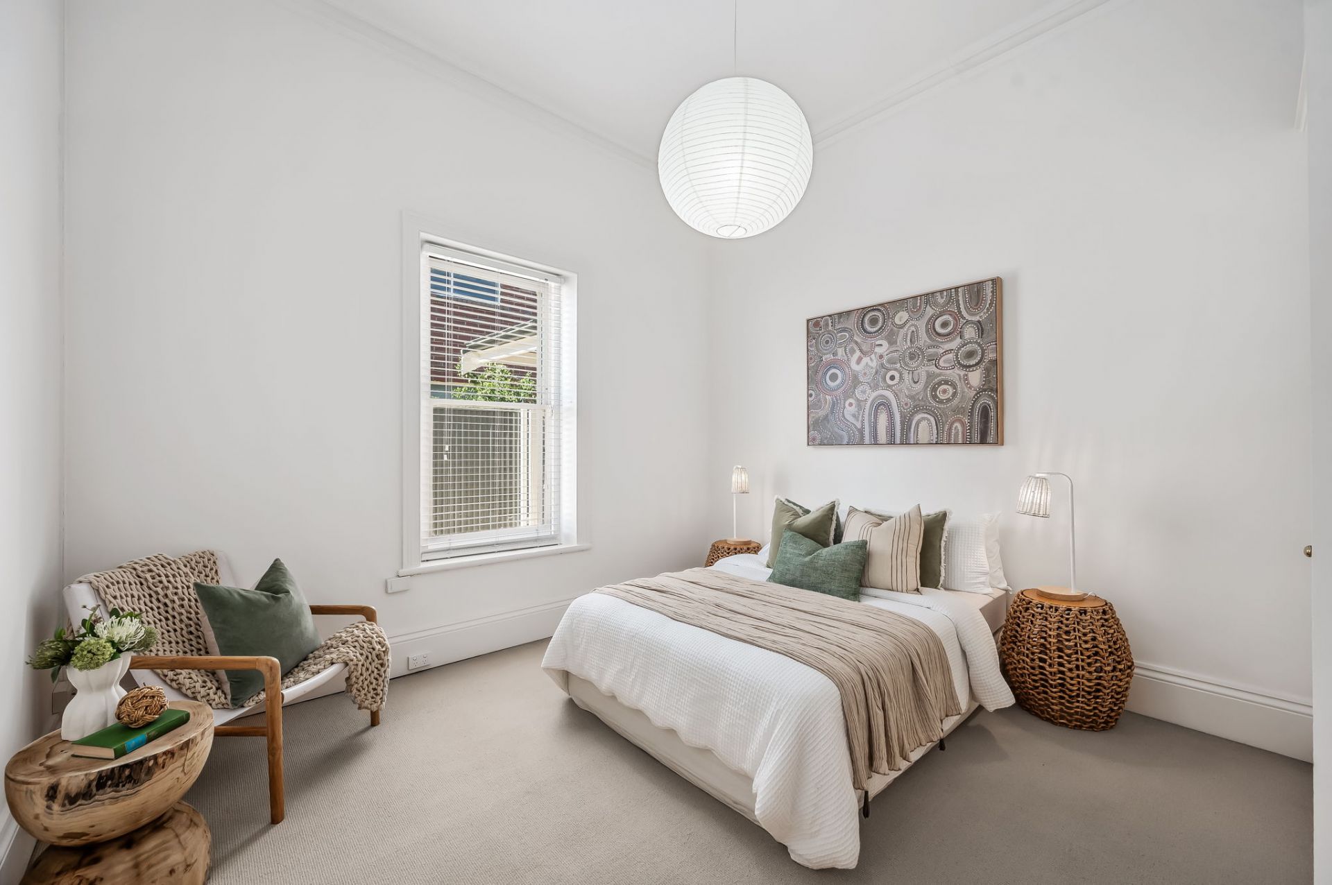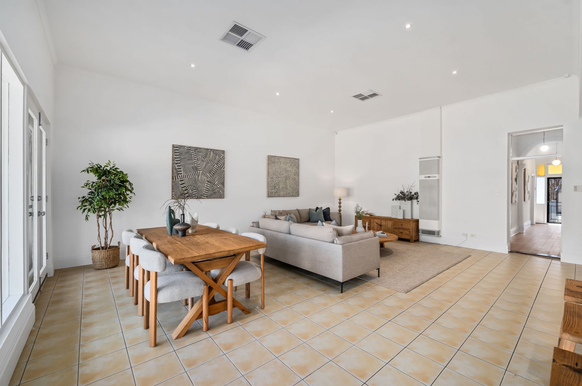 Front formal sitting room or 5th bedroom with polished floorboards and open fireplace and to the rear the light filled and expansive family living and meals areas with super high ceilings, double French doors and entertainer's kitchen with long island bench and plenty of storage. Sparkling and updated full family bathroom with bath and separate laundry adjacent.