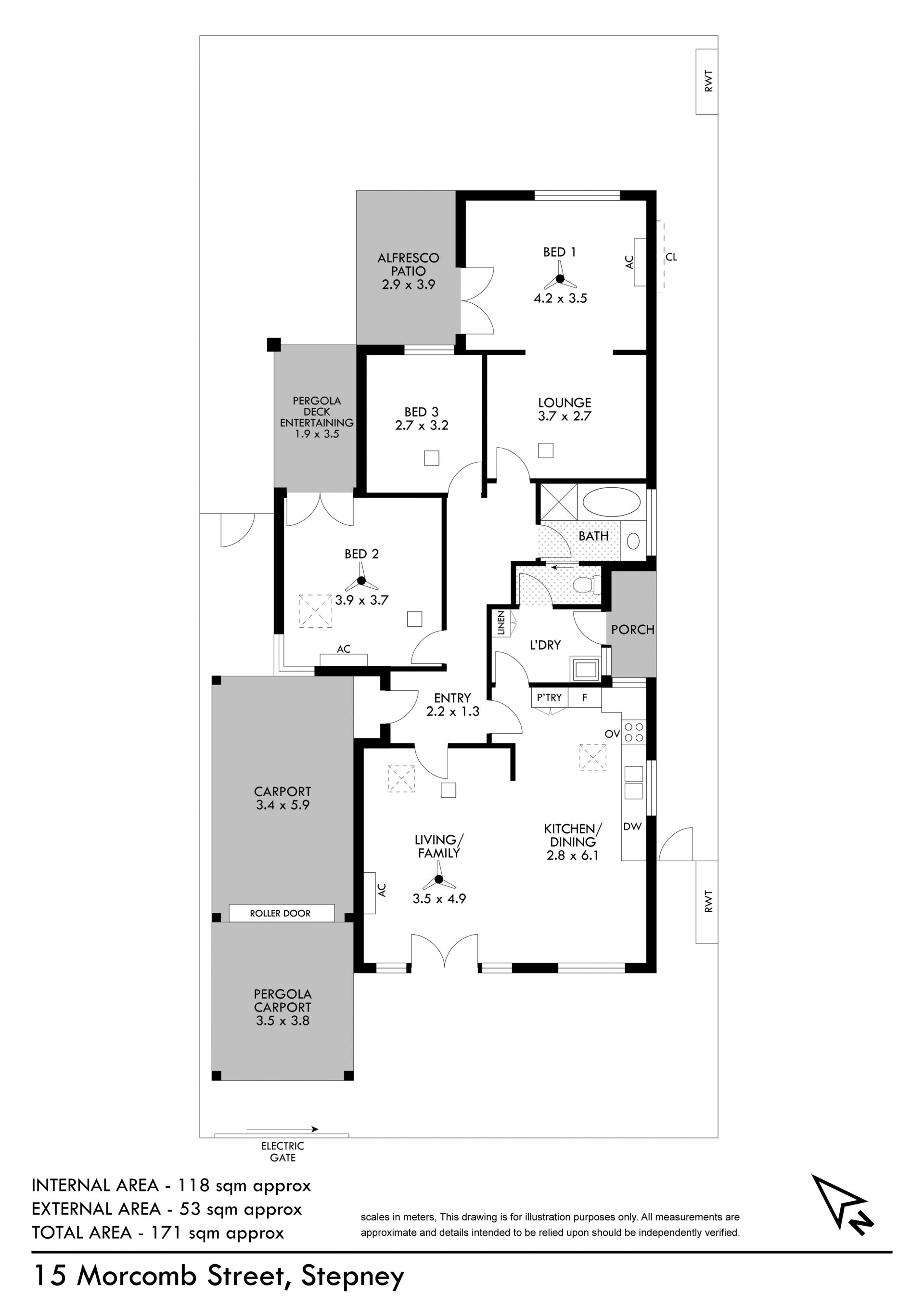 - Carport with roller door for one car undercover and additional parking for the family in the driveway