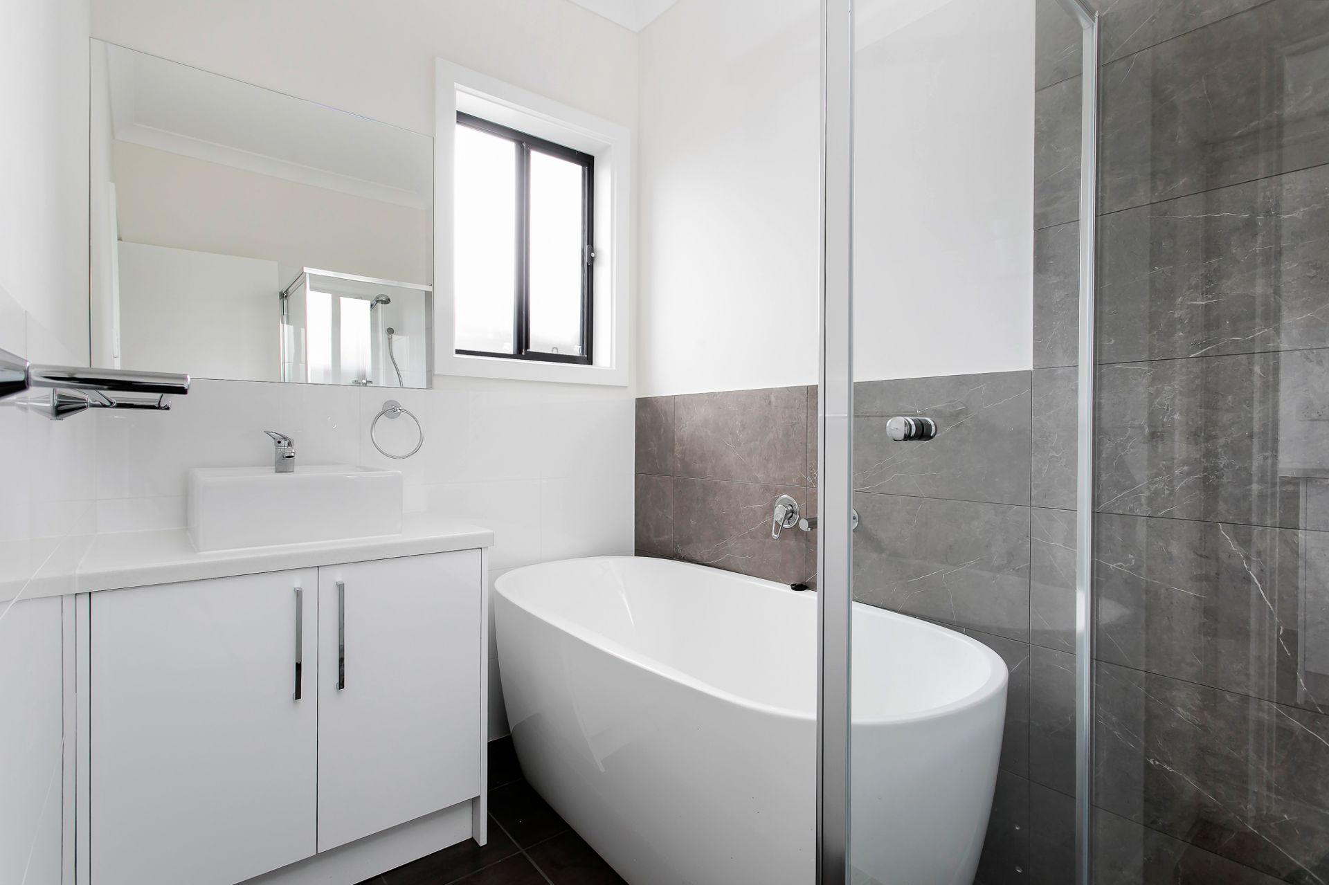 • Main modern bathroom with separate shower and free standing bath