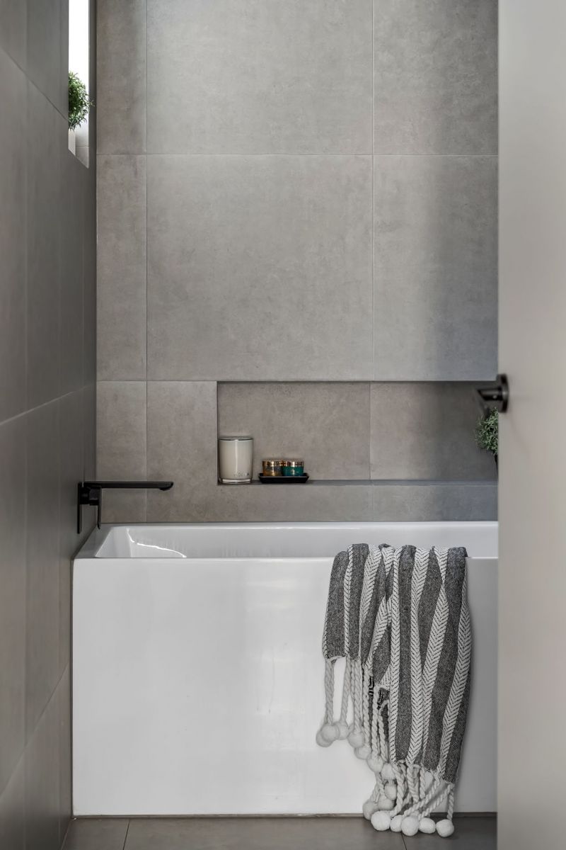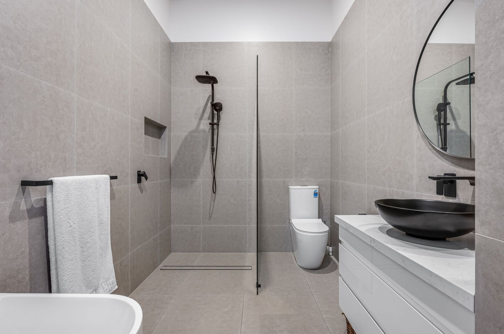 • Bathrooms: Contemporary large-format bathrooms equipped with showers, baths, and proper ventilation, and Carrara Marble tops