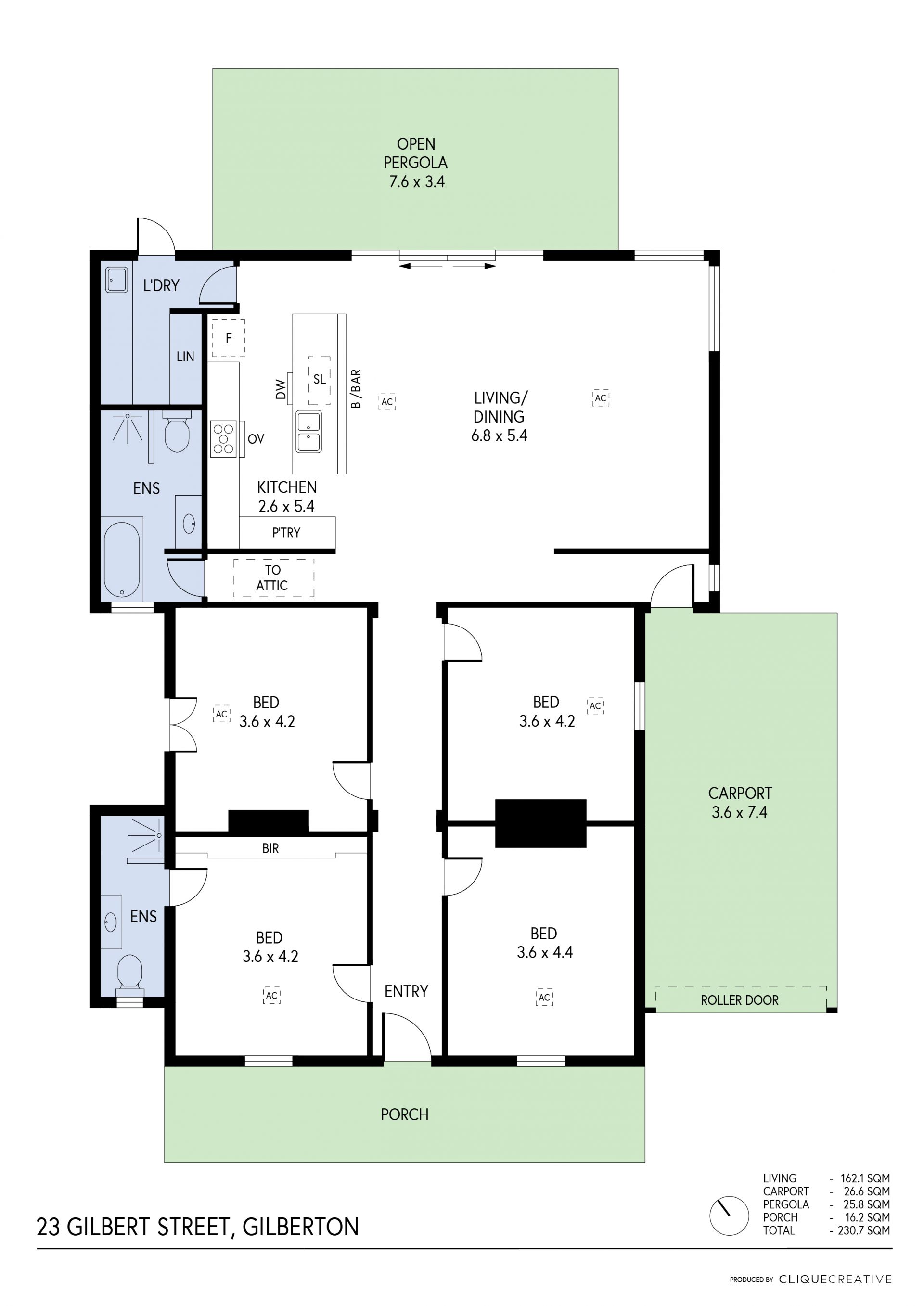 • Climate Control: Ducted reverse cycle air conditioning, including the new extension
