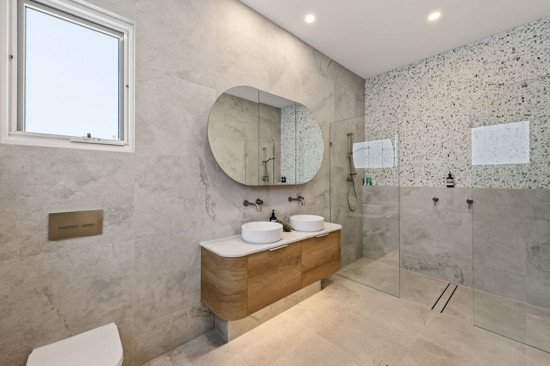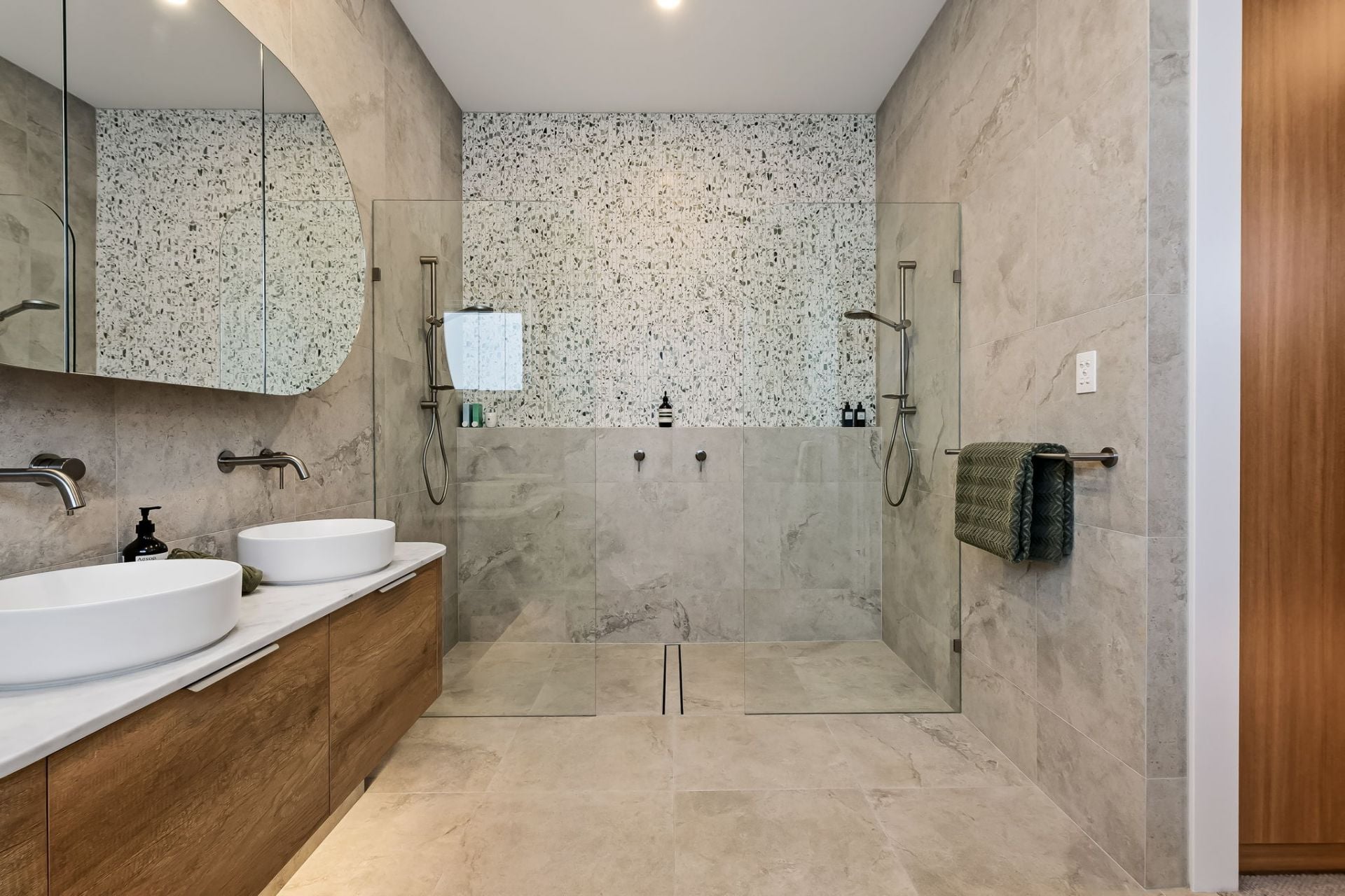 Built using core-filled Besser block construction, bondek slabs and 10mm double glazing, the home delivers exceptional thermal performance, privacy and longevity. Inside, soaring ceilings, multiple living zones and seamless indoor-outdoor flow create a home equally suited to family living and high-end entertaining.