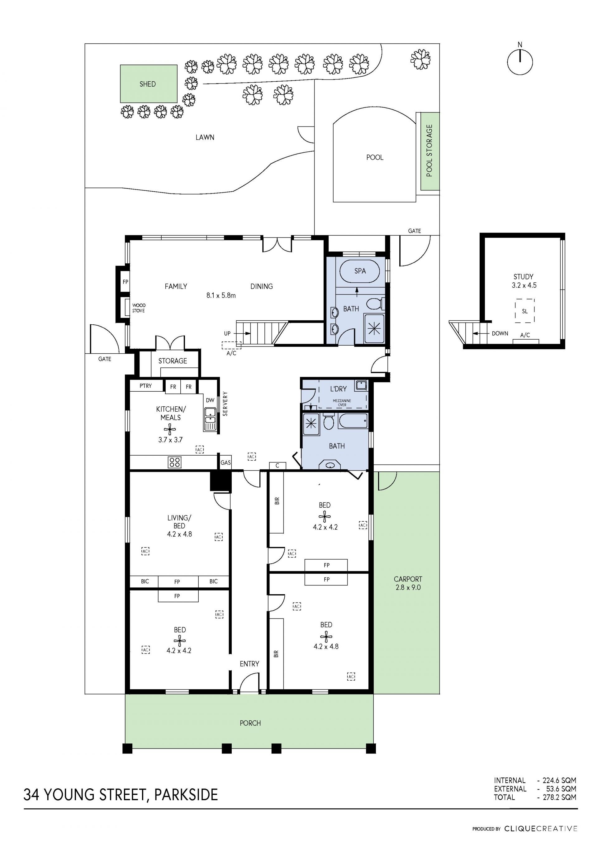 At the rear, Cathedral ceilings fill the generous living and entertaining area with a flood of natural Northern light. Upstairs enjoy the bonus of a mezzanine room – think studio, study, work from home office or cozy retreat, the choice is yours.