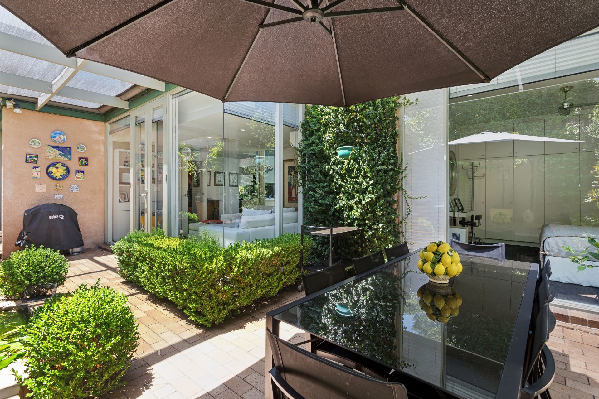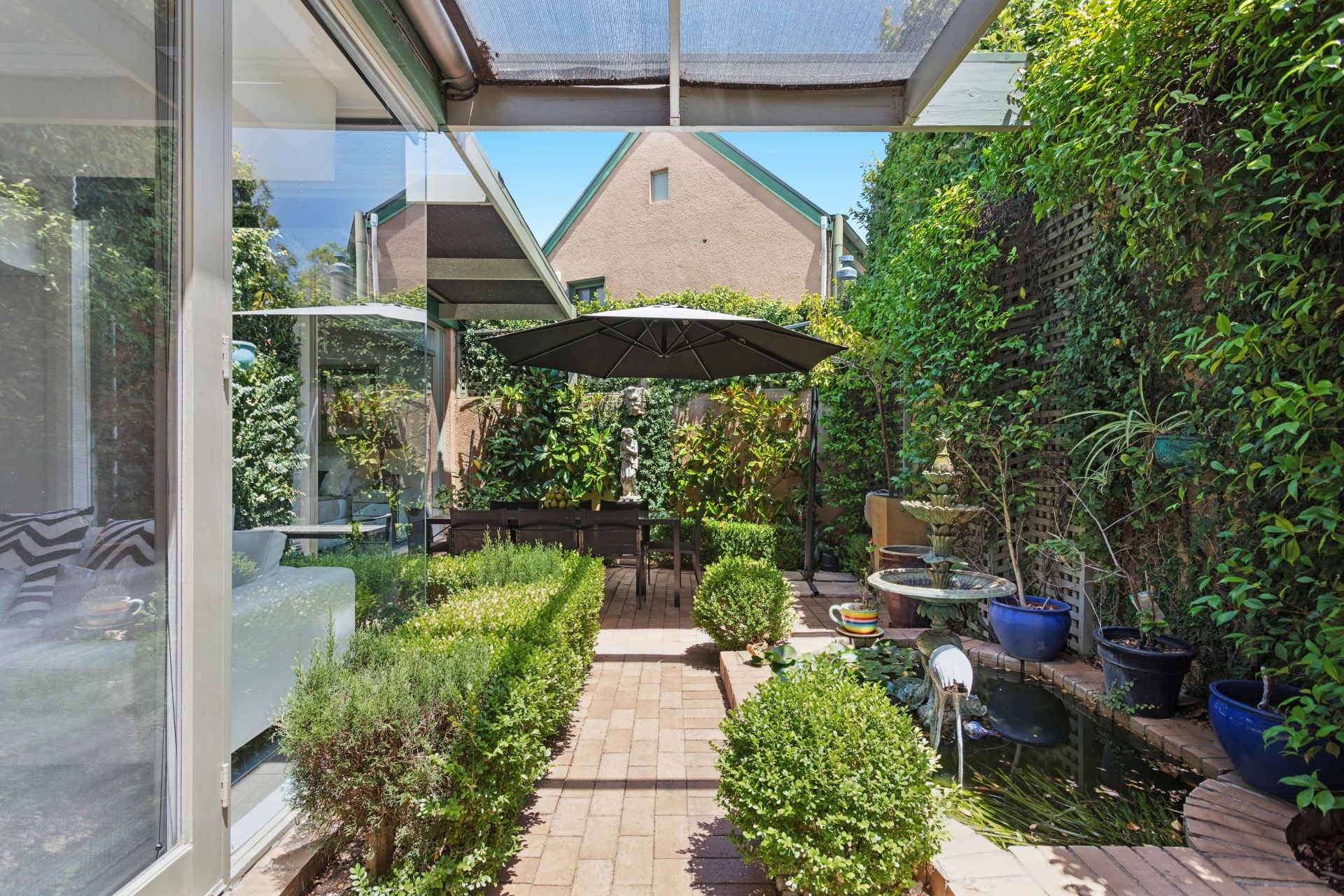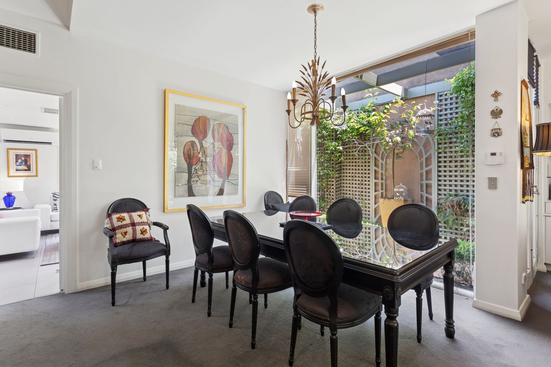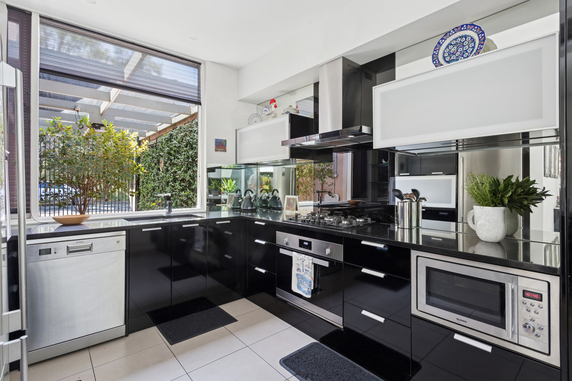Comfortable and well presented the ground level further comprises spacious, contemporary kitchen with striking black elements, opening to adjacent sun filled North facing living area and green walled courtyard beyond, offering a peaceful and private outdoor retreat. Separate sitting room and dining room create welcoming spaces for everyday living and entertaining.