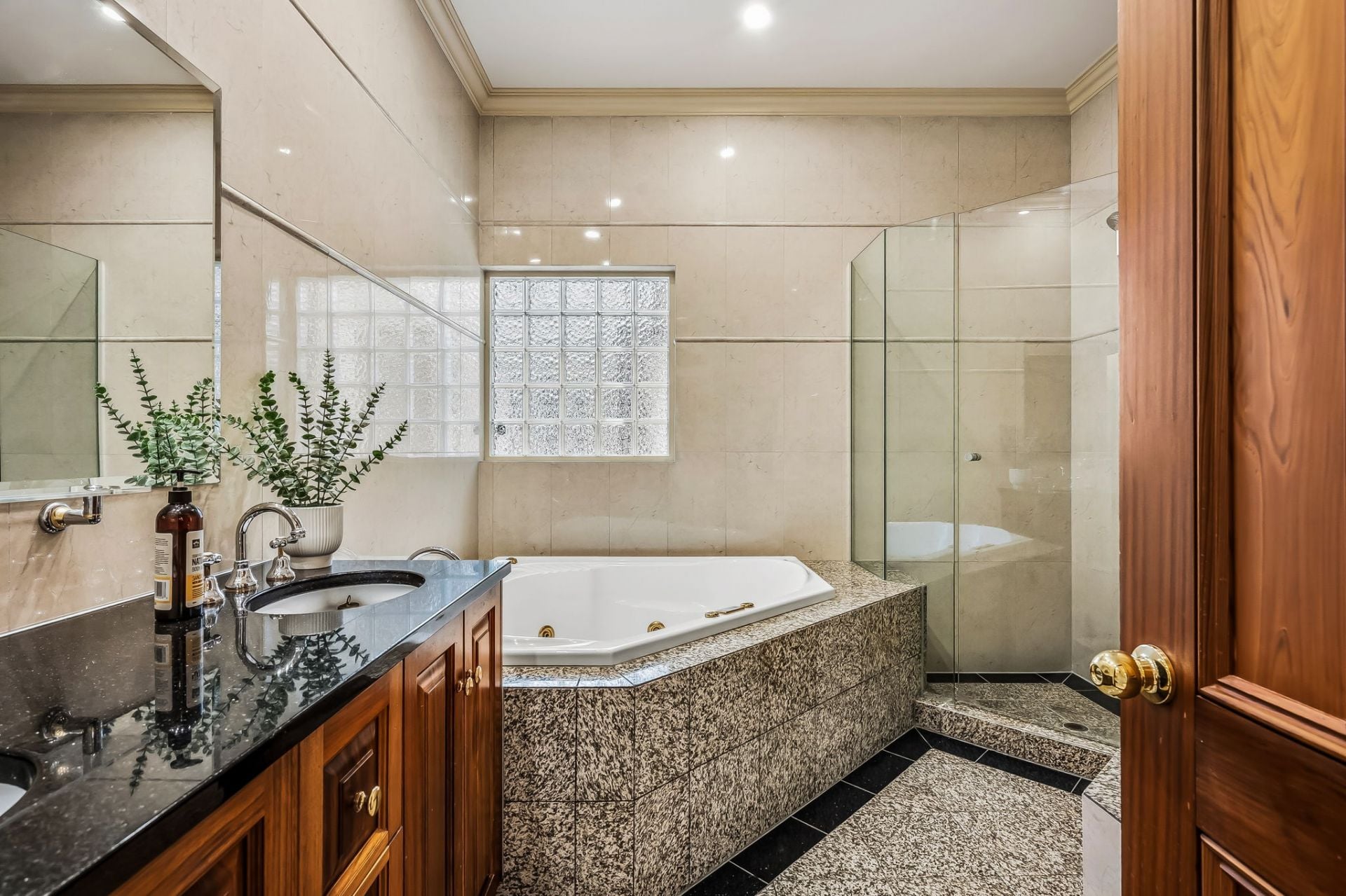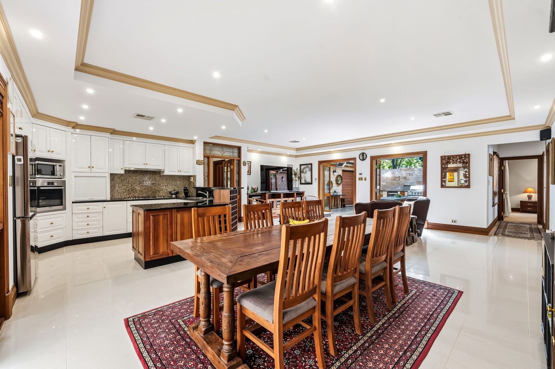 The layout is both generous and intelligent, featuring multiple living zones, a substantial timber and granite kitchen, and seamless connection to the central courtyard - an outdoor room designed for year-round entertaining. Finishes throughout reflect the quality of the build, including granite benchtops and splashbacks, high-quality direct-stick timber flooring, ornate parquetry flooring to the entry lobby, and high-quality Blackbutt timber joinery throughout. The kitchen benefits from recently updated white 2-pac painted rear joinery, retaining warmth and cohesion with the home's timber detailing.
