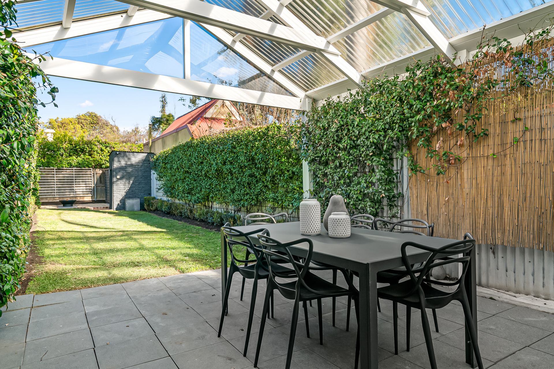 Out the back offers a paved annex with covered pergola providing all year round alfresco entertaining and dining then onto the deep and grassed yard bordered by English box hedge and offering massive potential to extend if so desired. Other features include r/c air conditioner, dishwasher, microwave, garden shed and on street permit parking.