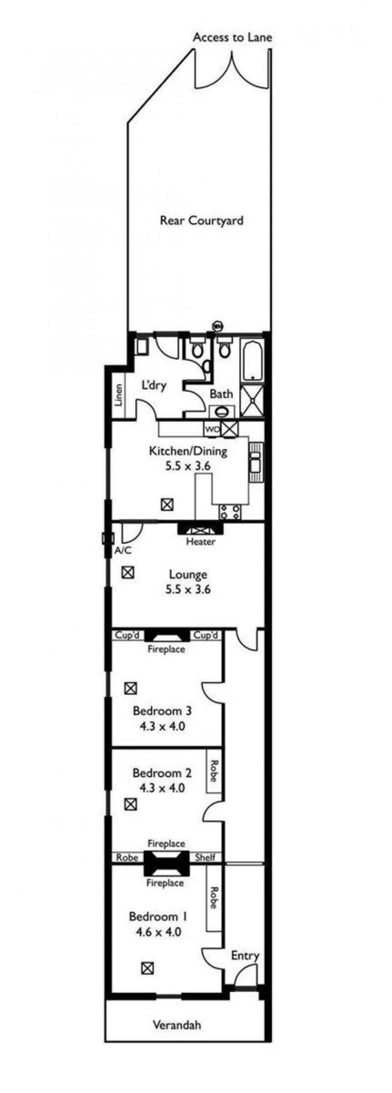 Three bedrooms and 1.5 bathrooms