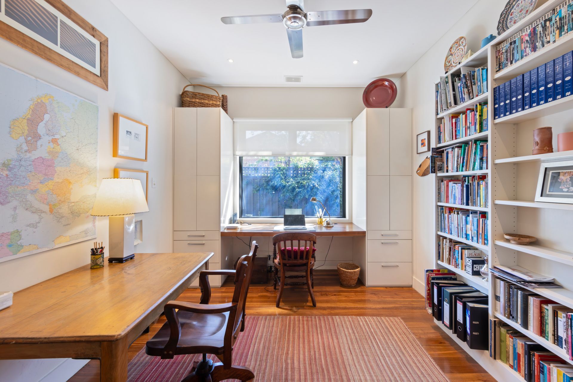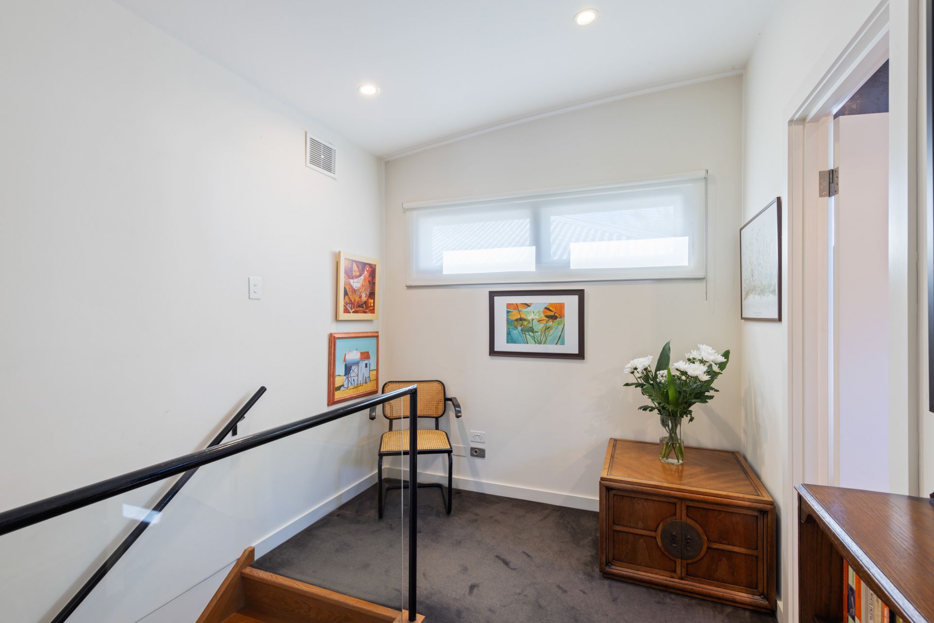 The main bedroom, located downstairs, boasts a large walk-in robe and ensuite and is set away from the main living zone. A fully equipped office (3rd bedroom) is also located on the ground level and is framed with an oversized window providing a peaceful outlook to a private side garden of greenery. Upstairs offers the perfect guest room or teenagers retreat. An additional bathroom is also located upstairs with ample space on the landing for a study nook.