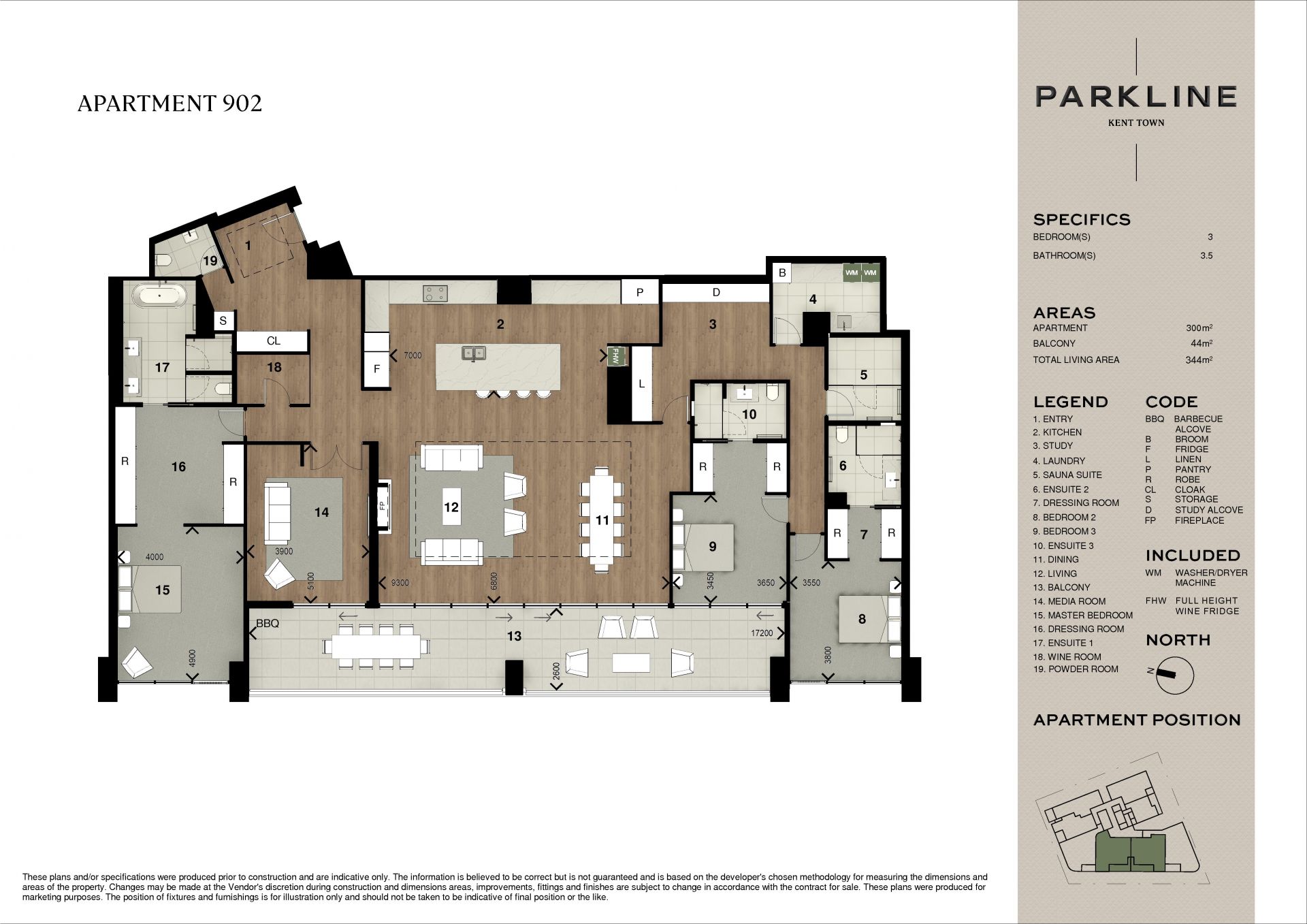 Entertain in style on the expansive 50 sqm entertainer's balcony, perfect for hosting gatherings or simply relaxing in the serenity of your surroundings. The apartment features three bedrooms, each with its own ensuite bathroom, providing ultimate comfort and privacy. The master bedroom includes a walk-through robe, adding a touch of opulence to your daily routine.
